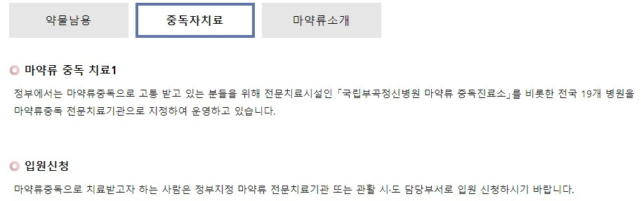 중독자분은 위의 링크된 리스트의 병원 입원 진료 시 최대 1년 치료비를 국고지원받을 수 있습니다.