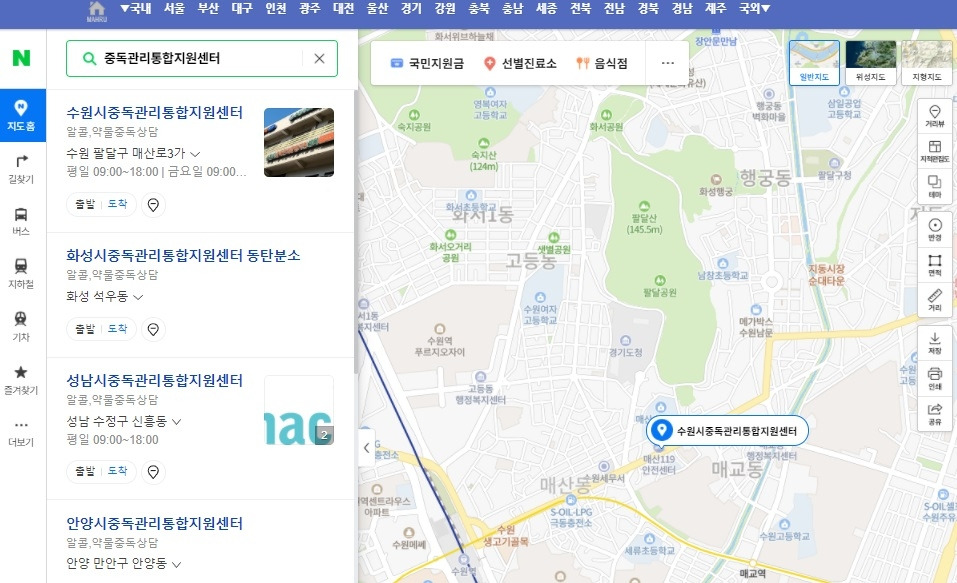 네이버 지도 또는 구글 지도 검색창 아래의 단어 입력