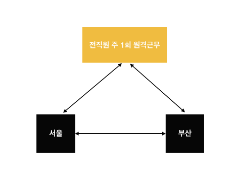모두싸인팀은 '어떻게 하면 일을 더 잘 할 수 있을까?' 에 대해 자주 고민하려고 노력합니다. 원격근무 이야기는 2018년 하반기부터 나왔습니다. '원격근무'가 우리의 업무 효율을 높일 수 있는 것이라면 우리도 해봐요!' 라는 의견들이 모여 회사 내 이슈가 시작되었는데요. 원격근무 이슈가 나왔던 2018년 이후, 19년부터는 서울 사무실 오픈과 서울 구성원 채용이 예정된 상태였어요. 부산 - 서울 간 원격으로 일하게 될 것이고, 또 서울 구성원의 상황을 우리가 잘 알고 있어야한다는 의견에서 출발해 '구성원마다 본인이 일하기 좋은 환경이 있을 것이고, 그 환경에서 일에 더욱 집중하고 몰입할 수 있다면 굳이 같은 공간, 사무실에서 함께 있는 것이 필수적인 것은 아니겠다'라는 의견이 모아졌죠. ('원격으로 일하는 것이 우리의 업무 효율을 떨어트리지 않을 것이고, 우리 팀은 서로를 신뢰한다'는 믿음을 가지고 있었습니다.)
