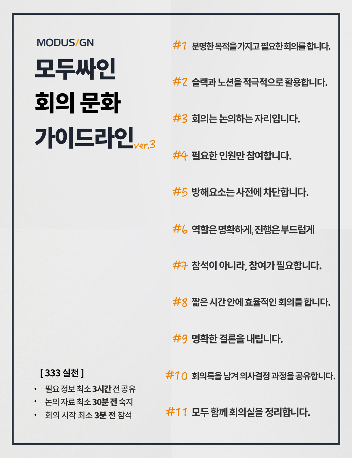 회의 전, 회의 목적과 도출해 내야 하는 결과를 분명히 하여 불필요한 회의는 최대한 자제해주세요. 회의주최자는 회의 시작 전 회의 목적과 도출해야 하는 결과를 화면에 공유해주세요