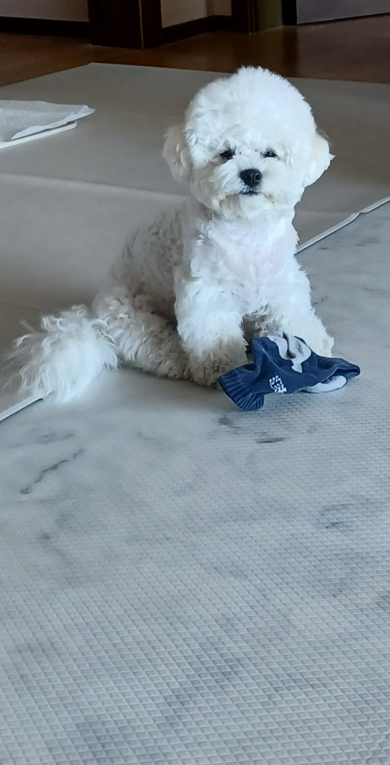 아빠 양말 물고 왔네.