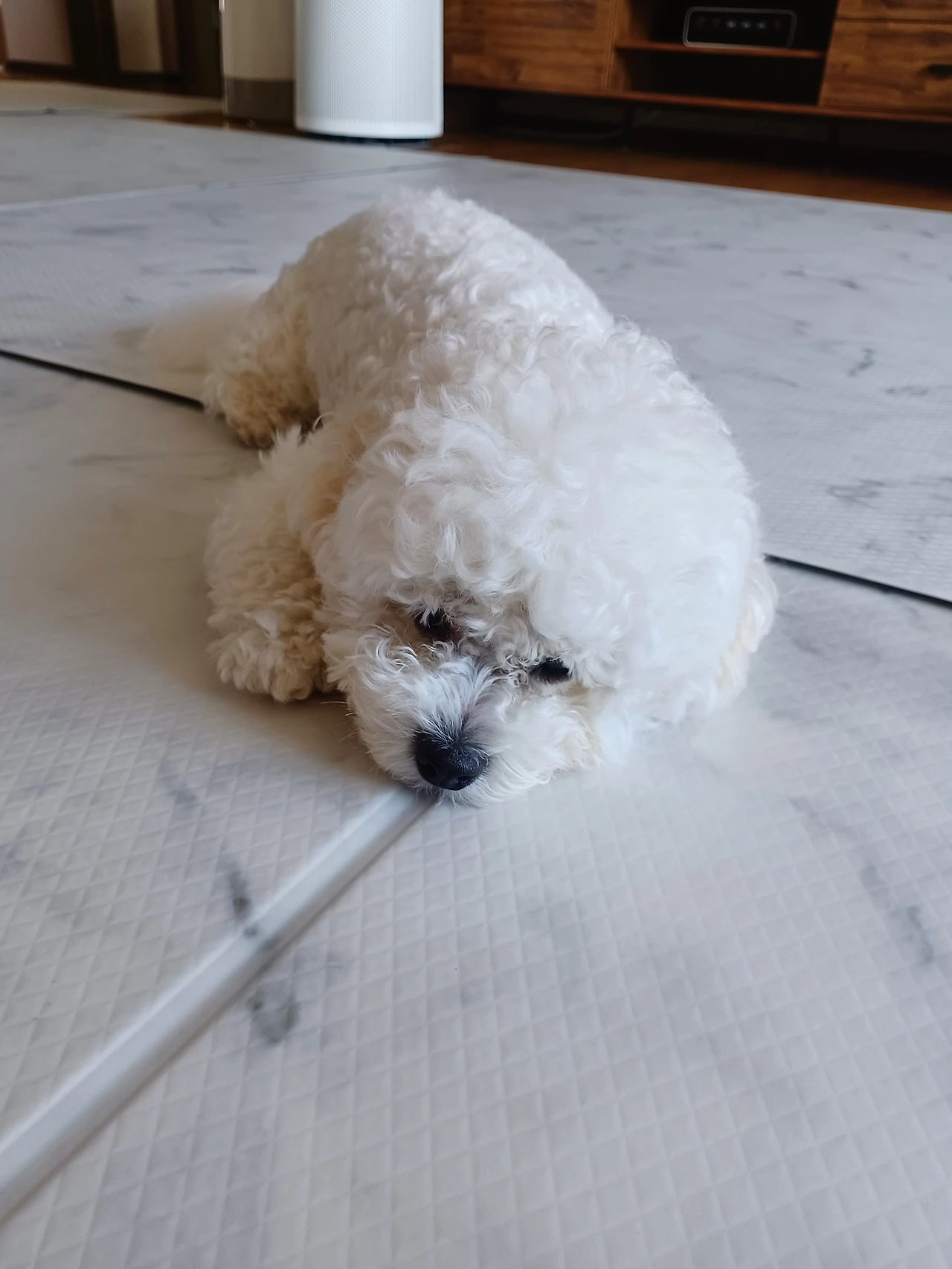 돌아와 쿨매트 위에 누워서 잠.
