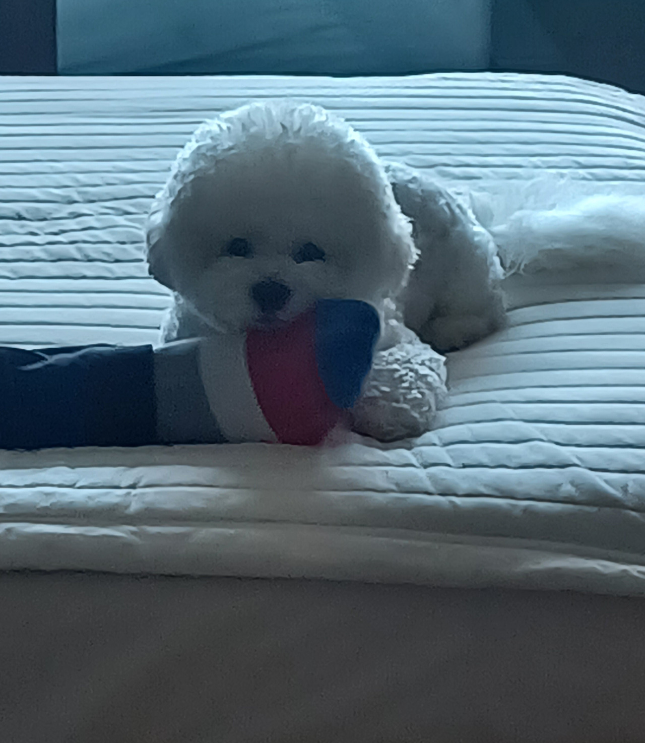 문 닫히자마자 아무렇지 않게 장난감을 물어뜯으러 갔다고.