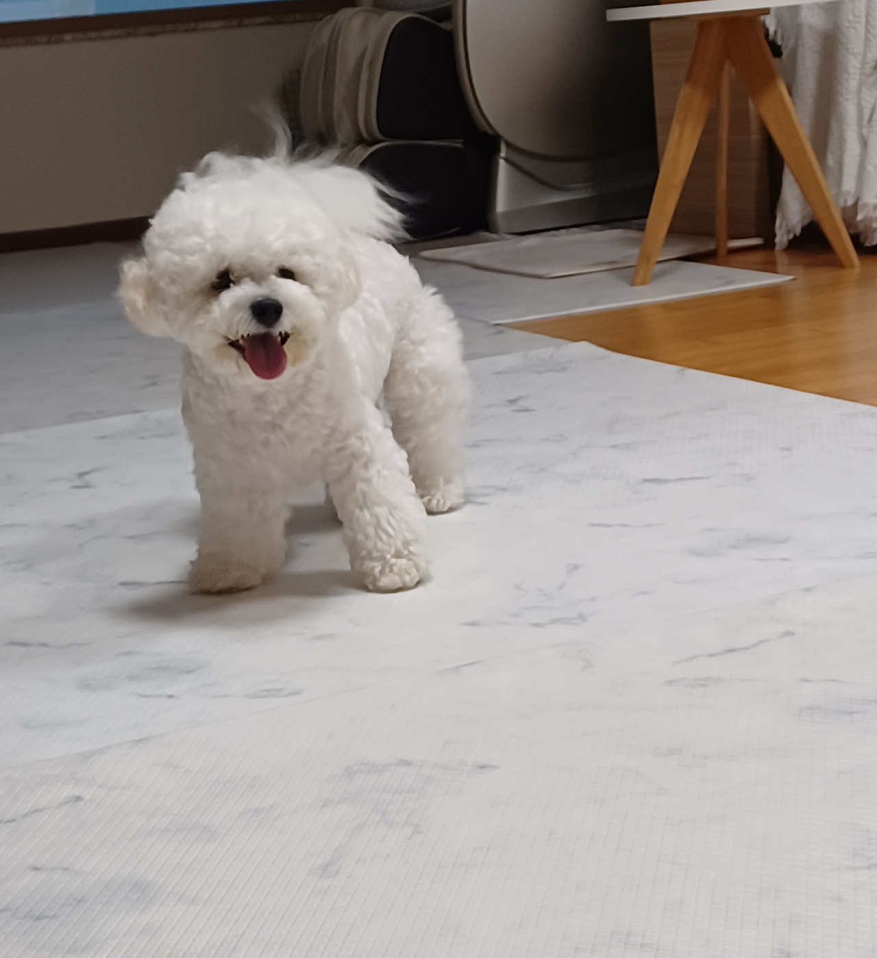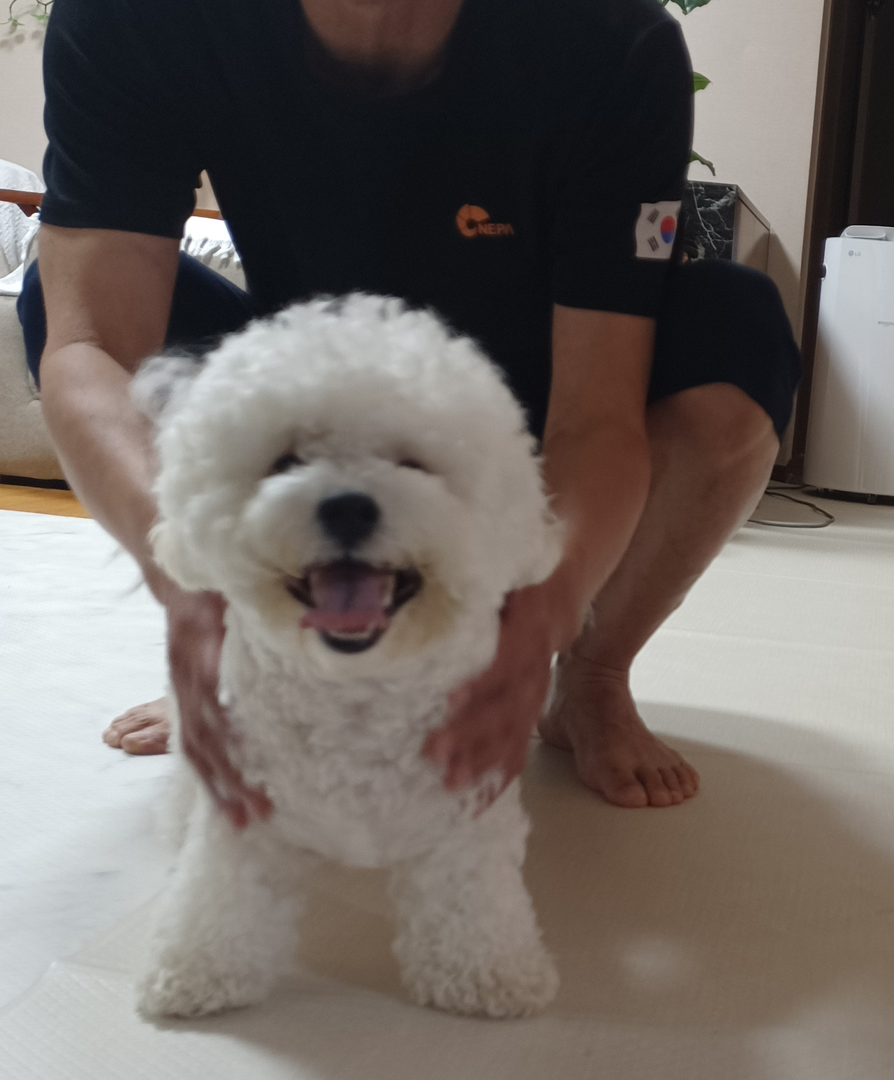 두 달만에 온 누나를 보고 좋아서 몇 달만에 비숑타임이 온 장군이. 아빠가 겨우 잡았다.
