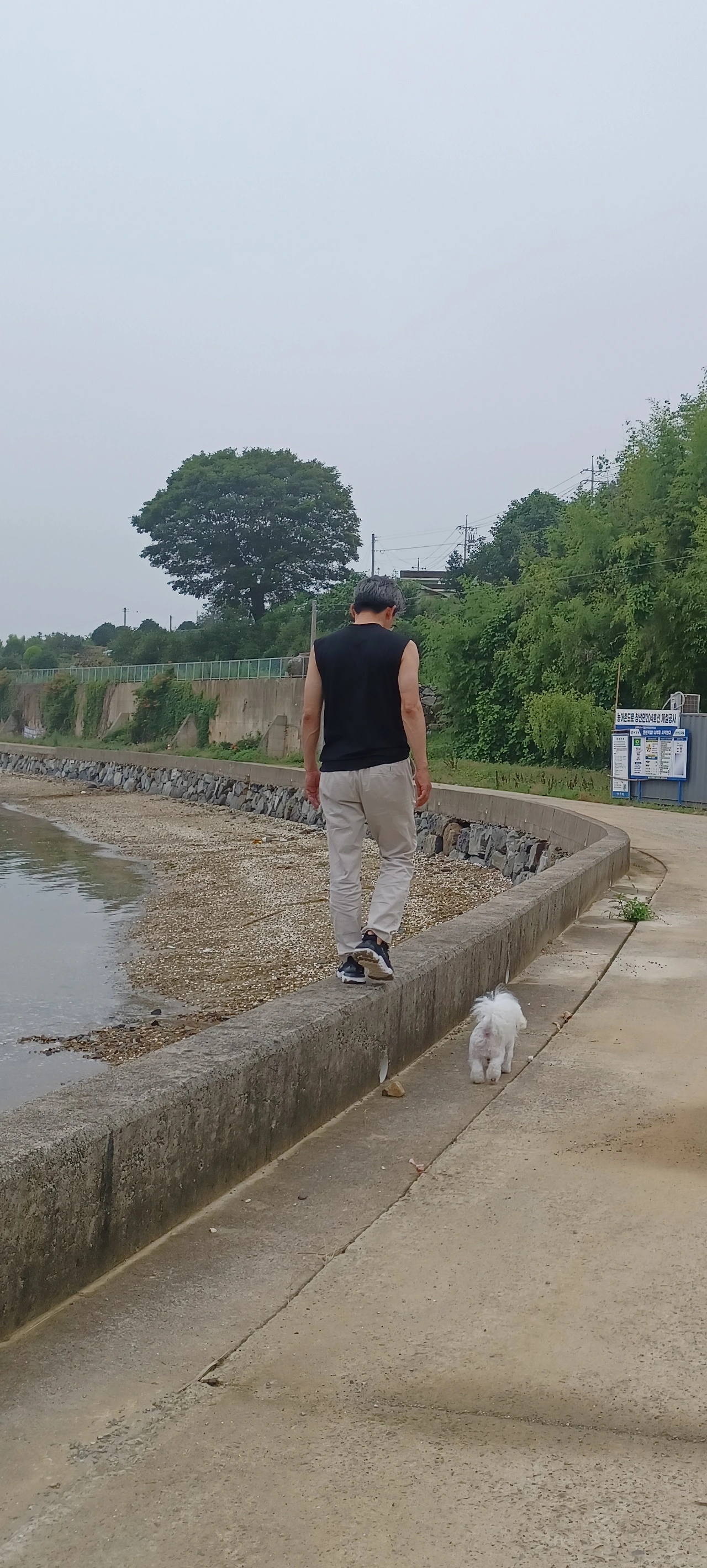 오십 넘어도 저런 데만 보면 꼭 올라가 걷는 남자와 다리 짧아도 꼭 걸쳐보는 강아지의 아침산책