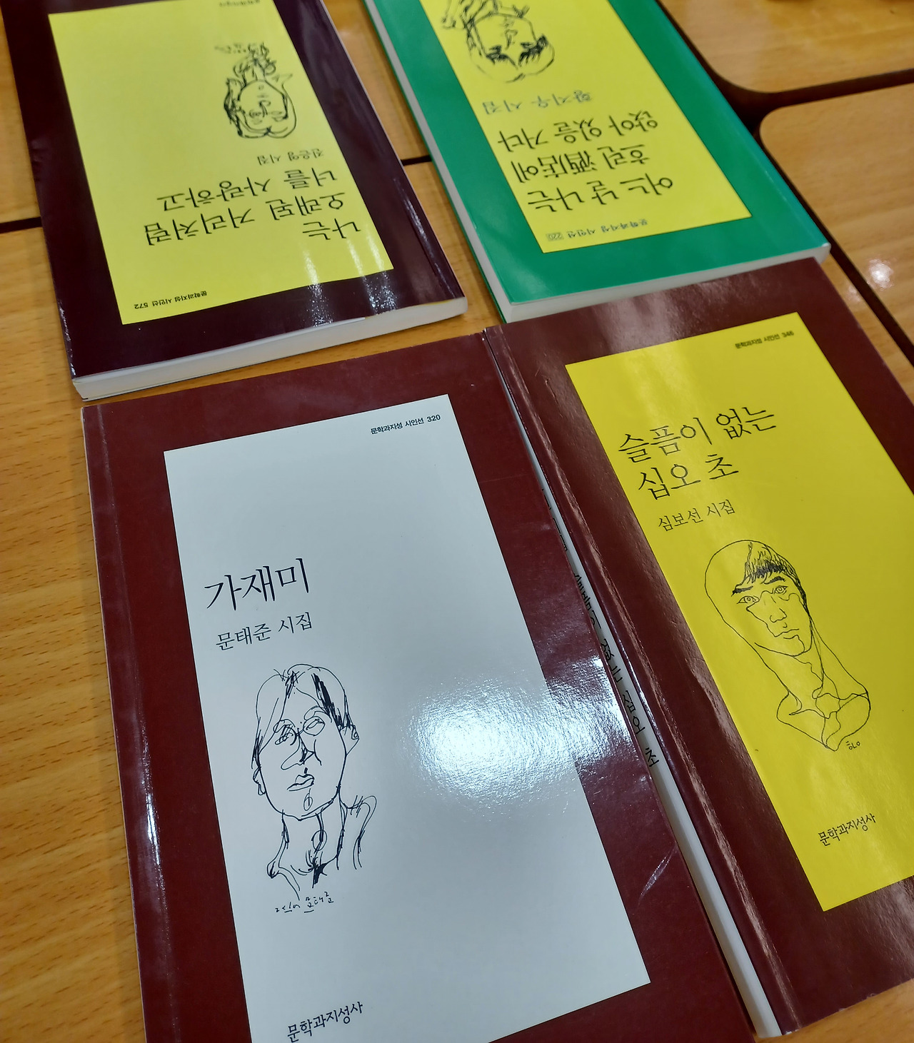 독서모임에 네 권의 시집을 가져갔다. 새로 산 것은 아니고 집에 있던 것 중 네 권을 골라 표지가 보이지 않게 포장했다. 시집 뽑기를 했다. 어떤 시가 되돌아올까 궁금해서 나도 뽑았다. 문태준 시인의 《가재미》였다.