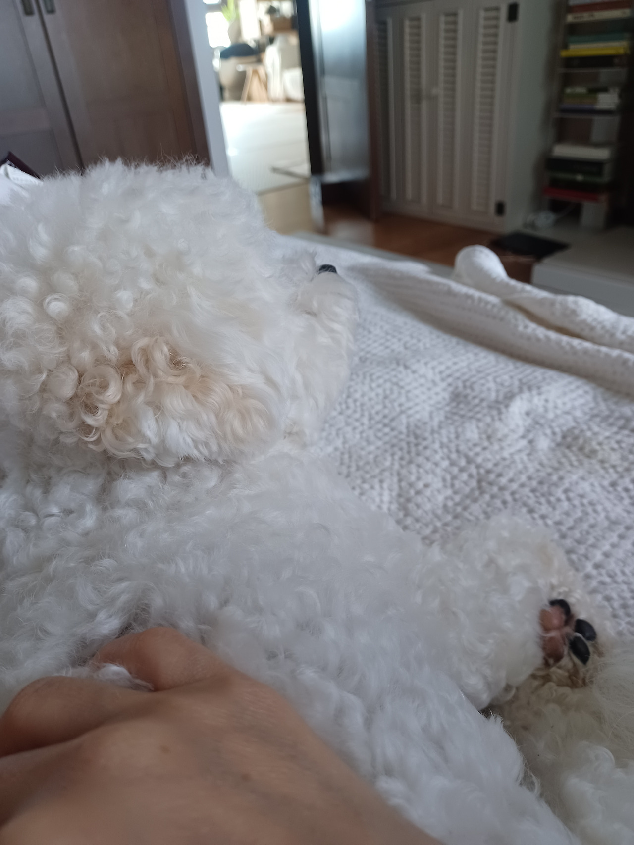 한참 조용히 곁에 누워있다 '너는 네 일을 해 나는 내 일을 할게' 하며 장난감을 물어뜯고 놀기도 한다. 그럴 때 불현듯 이름을 부르면 '왜' 하며 고개를 든다. 동작이 깜찍하고 재밌어 나는 자주 별 일없이 장난친다. 장군이는 그때마다 고개를 번쩍 들어 알은 체를 하는데 나는 그게 매번 웃긴다. 우리는 눈을 맞춘 채 몇 초간 가만히 바라보고 그러다 내가 웃으면 '뭐야 별거 아니었잖아' 하며 장군이는 다시 장난감으로 돌아간다.