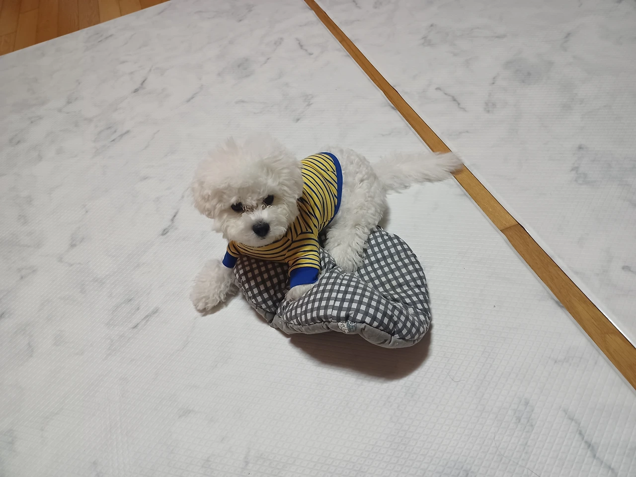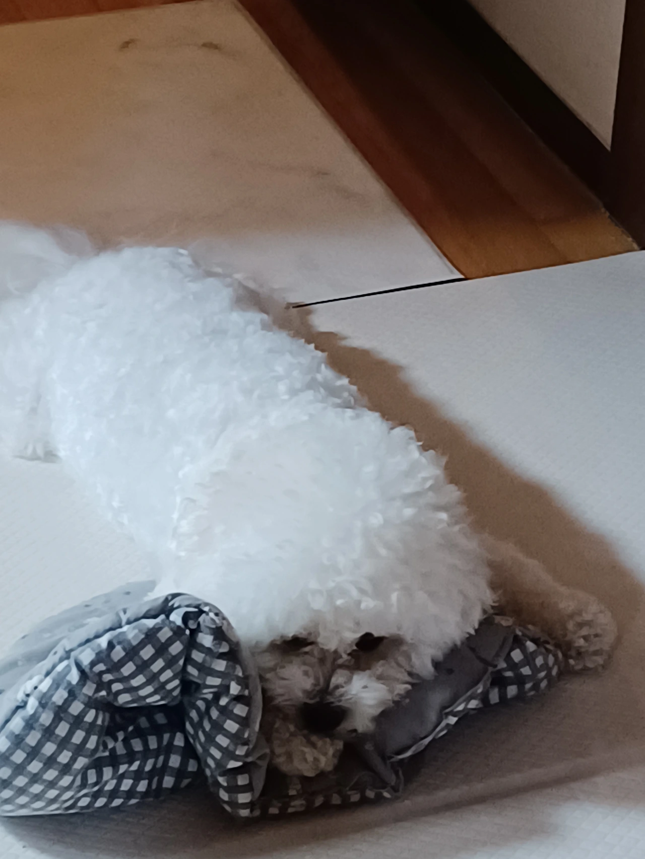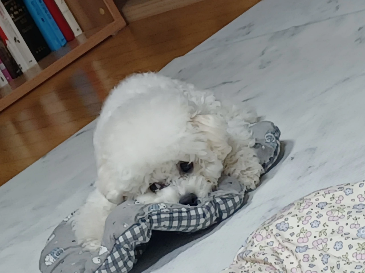 이갈이할 땐 이가 아프고 간지러우니 방석을 물고 엎드려 있나보다 했거든요.