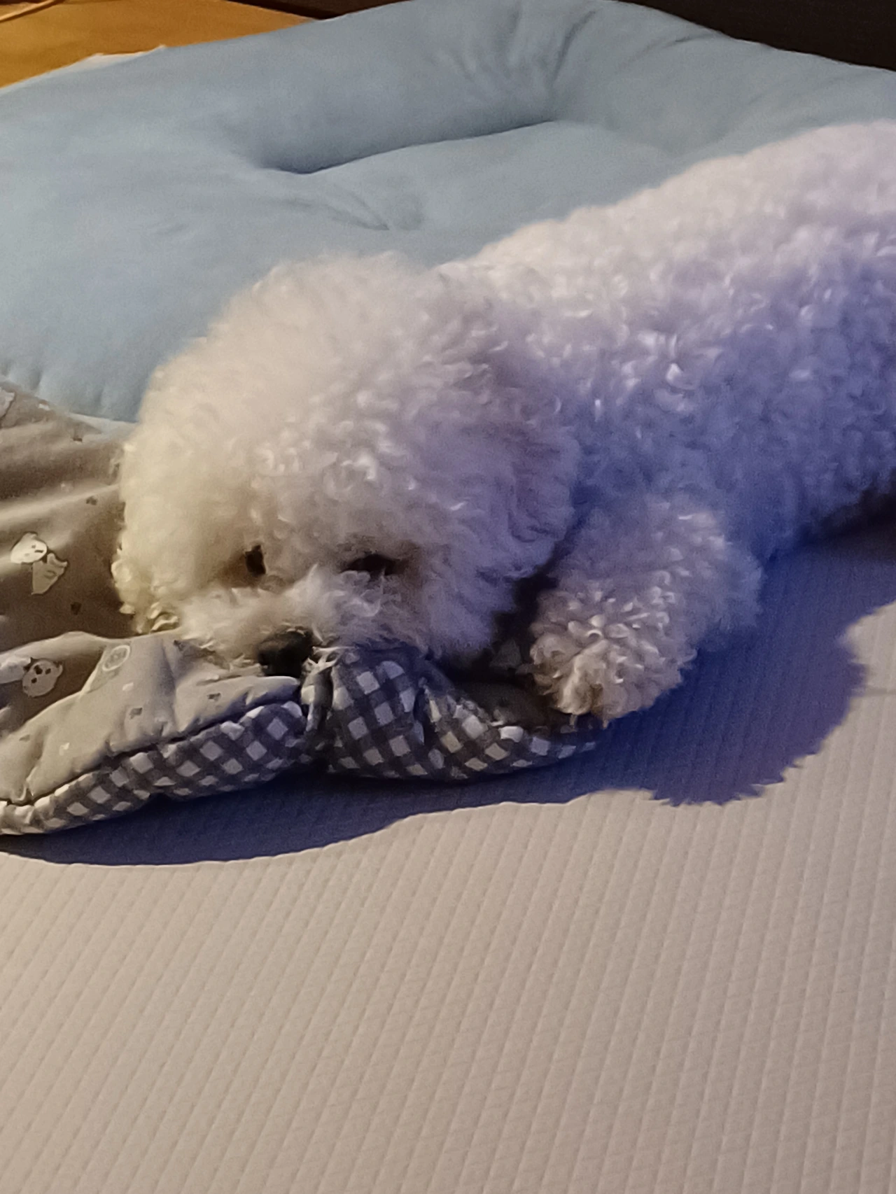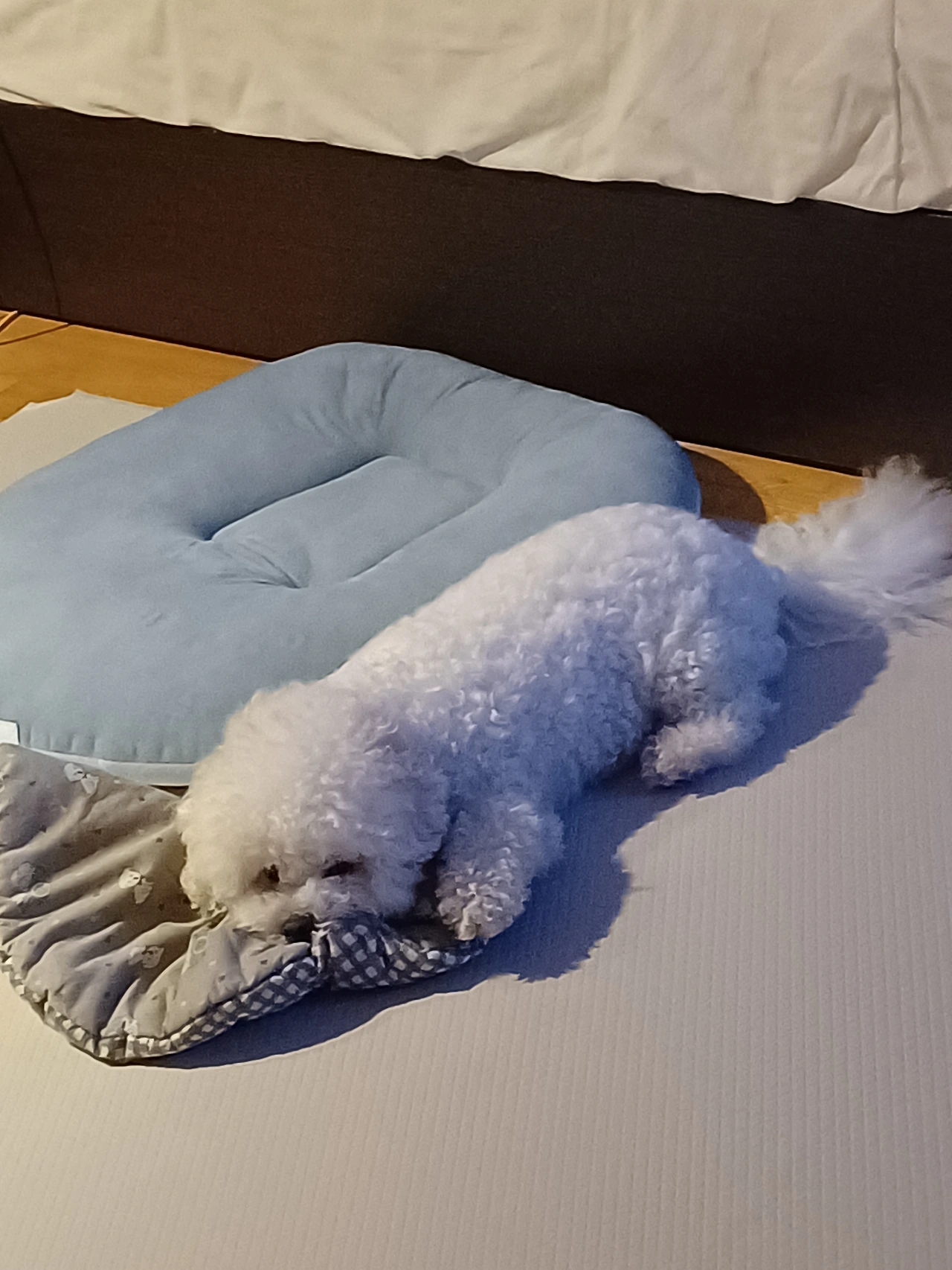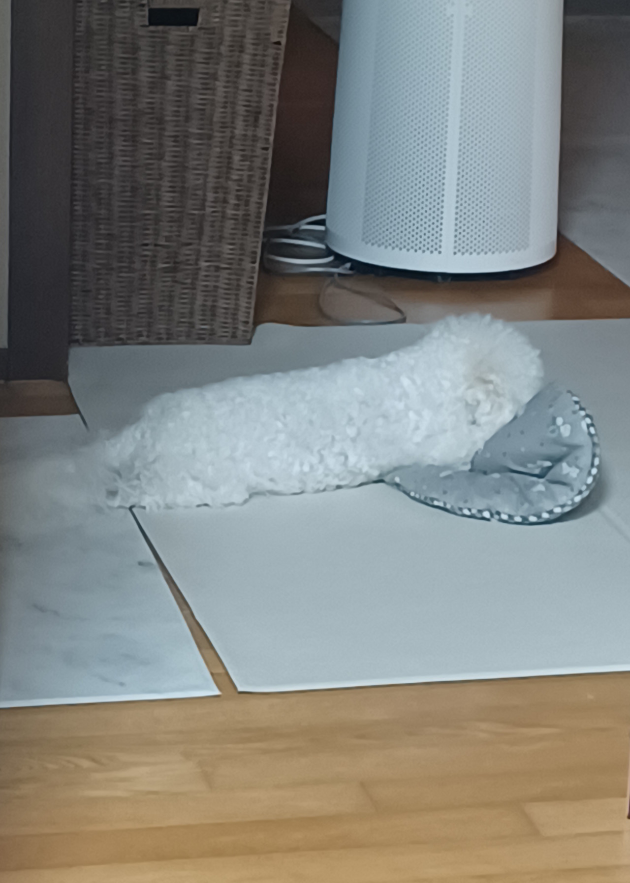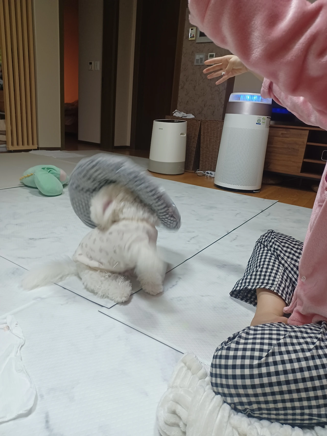 이갈이할 땐 이가 아프고 간지러우니 방석을 물고 엎드려 있나보다 했거든요.
