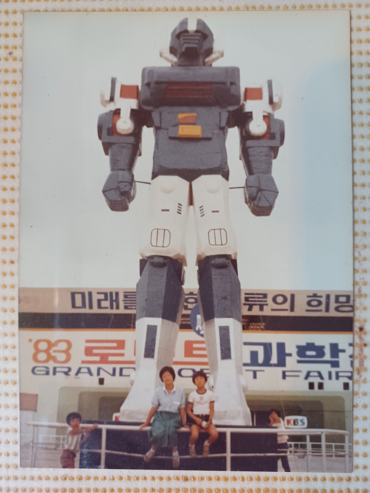회관 앞 광장에는 큰 모형이 전시되어 있었다. 어느 해엔 우주선이 높이 올려져 있고 다음 해엔 알록달록 아치 구조물이 세워졌는데 마지막으로 갔던 83년엔 태권브이가 서 있었다. 동생과 나는 그 앞에서 사진을 찍었다. 엄마는 손바닥만 한 코닥 필름 카메라에 우리의 모습을 담았다.