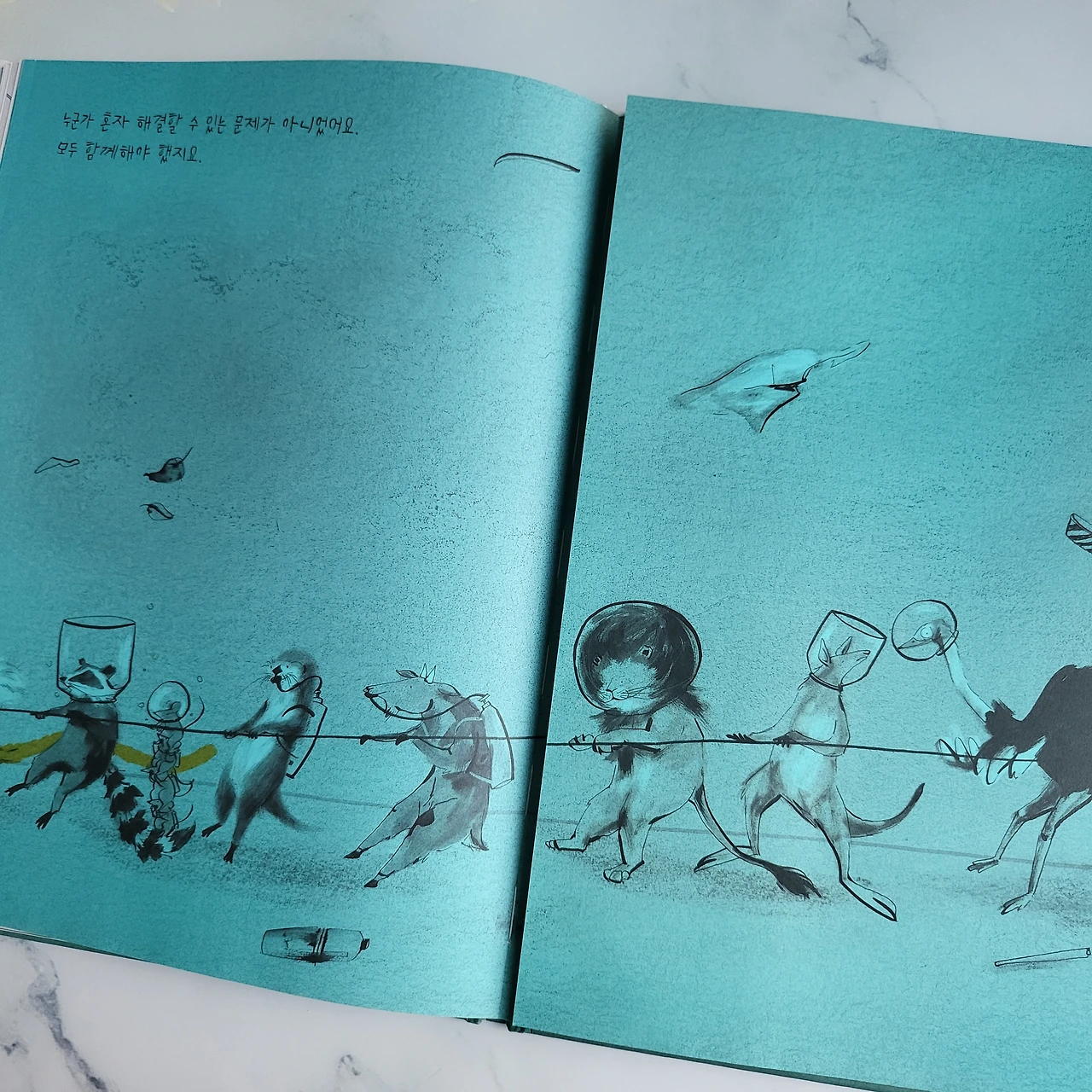 그림책 속에서 동물들은 위협을 느끼고 나서야 함께 힘을 모아 해결하려 한다. 문제는 해결이 되기는 했지만 예전과 똑같이 돌아갈 수는 없다고 표현한다. 이미 일이 벌어지고 나서는 예전처럼 돌아갈 수 없다는 걸, 지금 우리 곁에 있을 때 이 소중한 자연을 지켜야 한다는 걸, 우리 모두 기억해야 할 것이다.