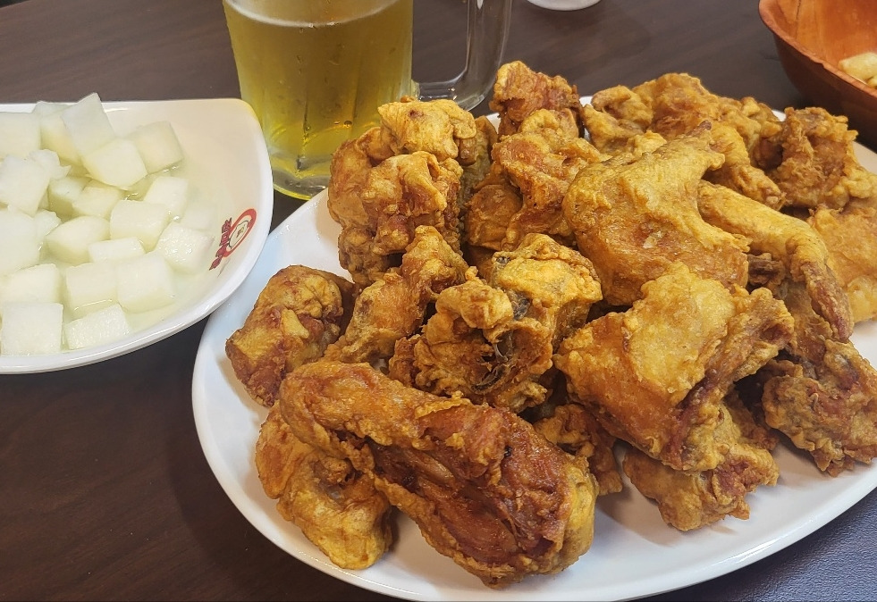 +수원에 왔으면 통닭거리에 가야겠죠? 줄을 길게 늘어서 있는 모습에 지레 겁먹고 그냥 갈까 생각했는데요, 생각보다 테이블 회전이 빨랐습니다. 저는 진미 통닭으로 갔는데요. 옛날 통닭과 후라이드를 시켰습니다. 음, 맛있습니다. 죽기 전에 또 가고 싶을 만큼은 아니지만 수원 왔으면 한번쯤은 먹어볼 만한 맛이었습니다. 개인적인 픽은 후라이드가 더 맛나더라고요. 생맥을 곁들이는 것도 잊지 마시고요.