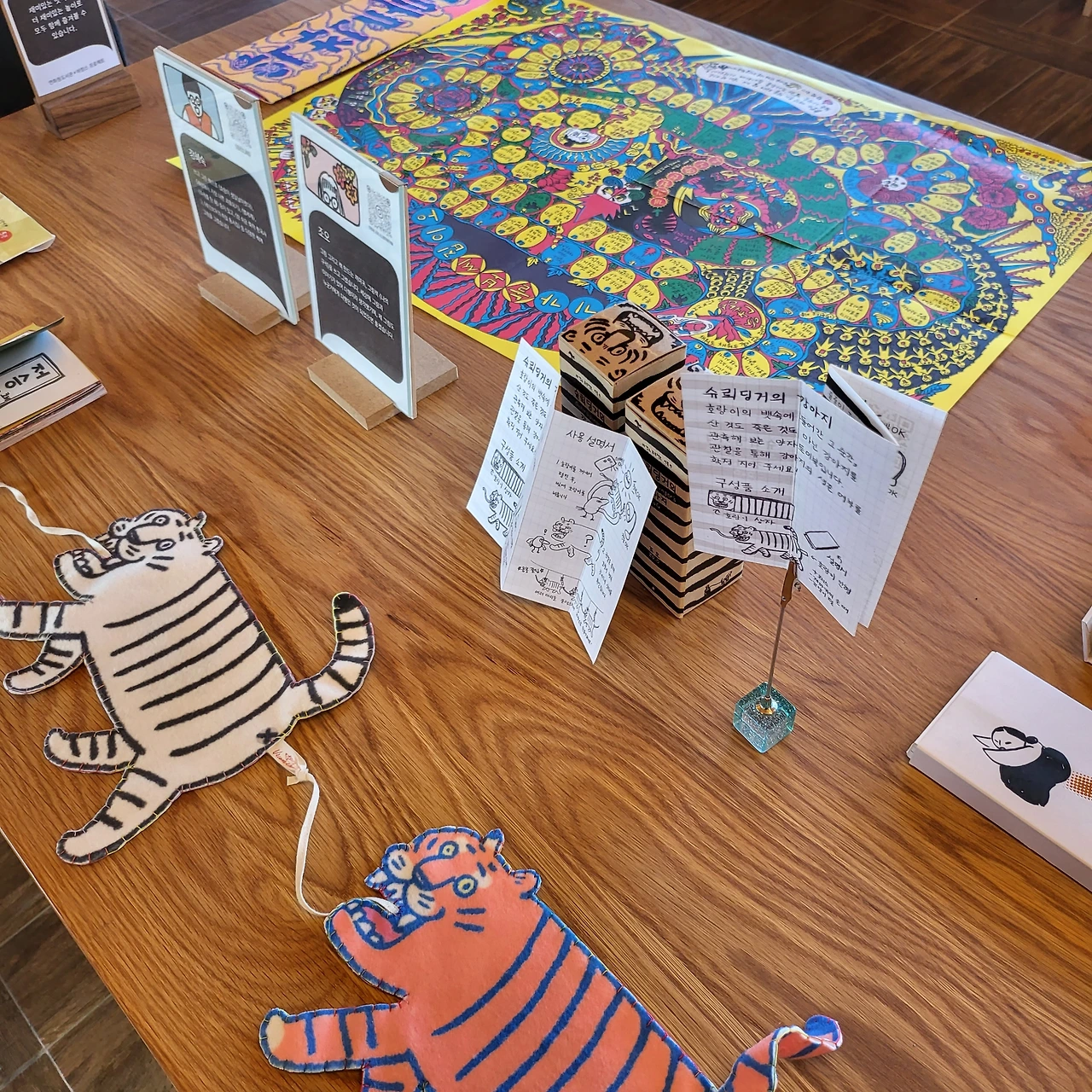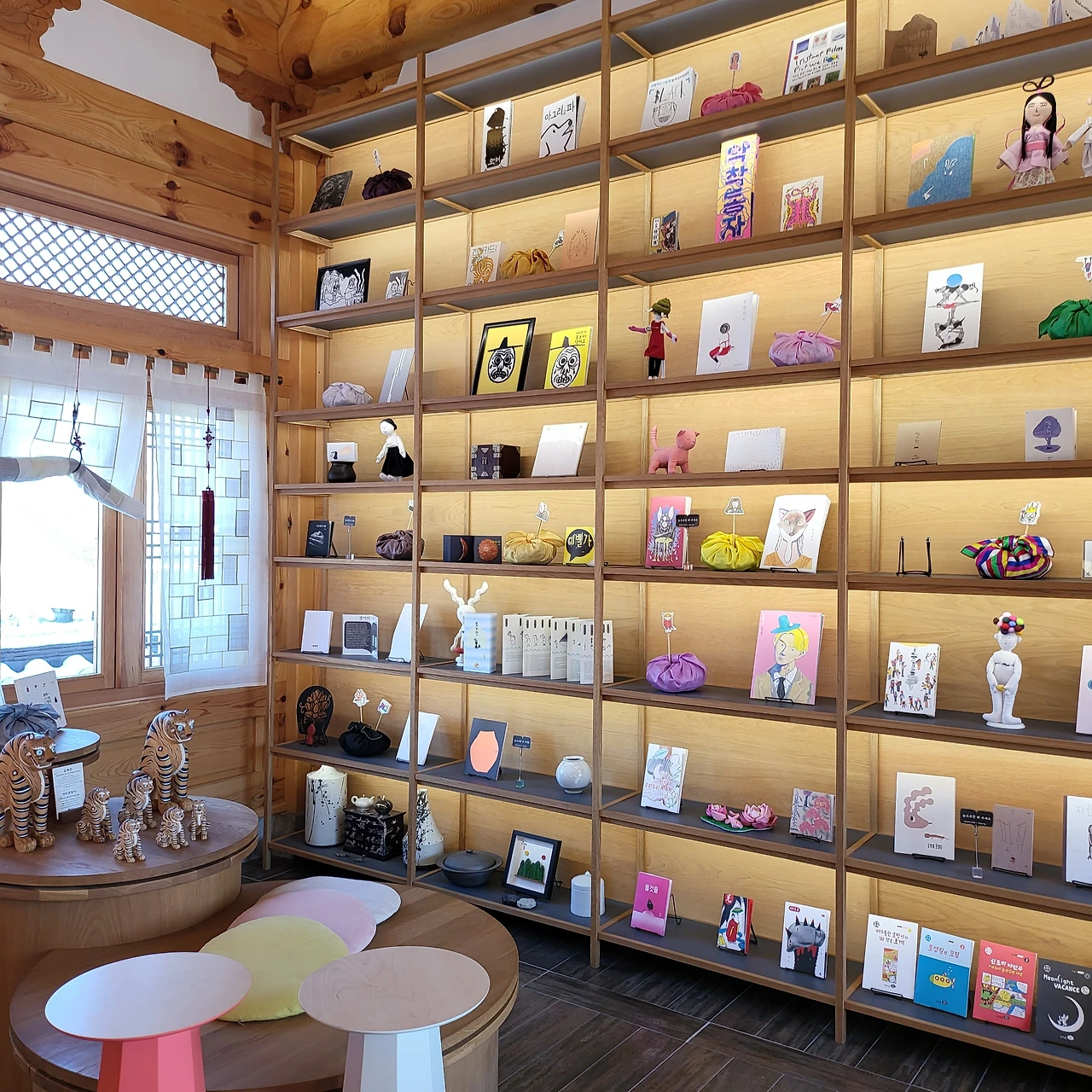 도서관 안에는 지난 서울 국제도서전에서 만난 그림책 작가님들의 바캉스 프로젝트 전시가 있었다. 지난 프로젝트 도서와 굿즈, 작가님들의 또 다른 작품들까지. 그밖에도 1800여권의 책들을 소장하고 있었다. 비싼 찻값을 지불하고 오래 앉아있으면 눈치 보이는 한옥 북까페 안 부러운 곳이었다. 그 고즈넉함에 빠진 시간. 나의 도부심에 생채기가 살짝 생겼지만 이런 곳을 만나다니!라는 생각에 오히려 눈이 반짝였다. 아직 가보지 못한 책의 도시 전주의 도서관들을 생각하니 내 심장의 바운스가 더욱 격하게 느껴졌다.