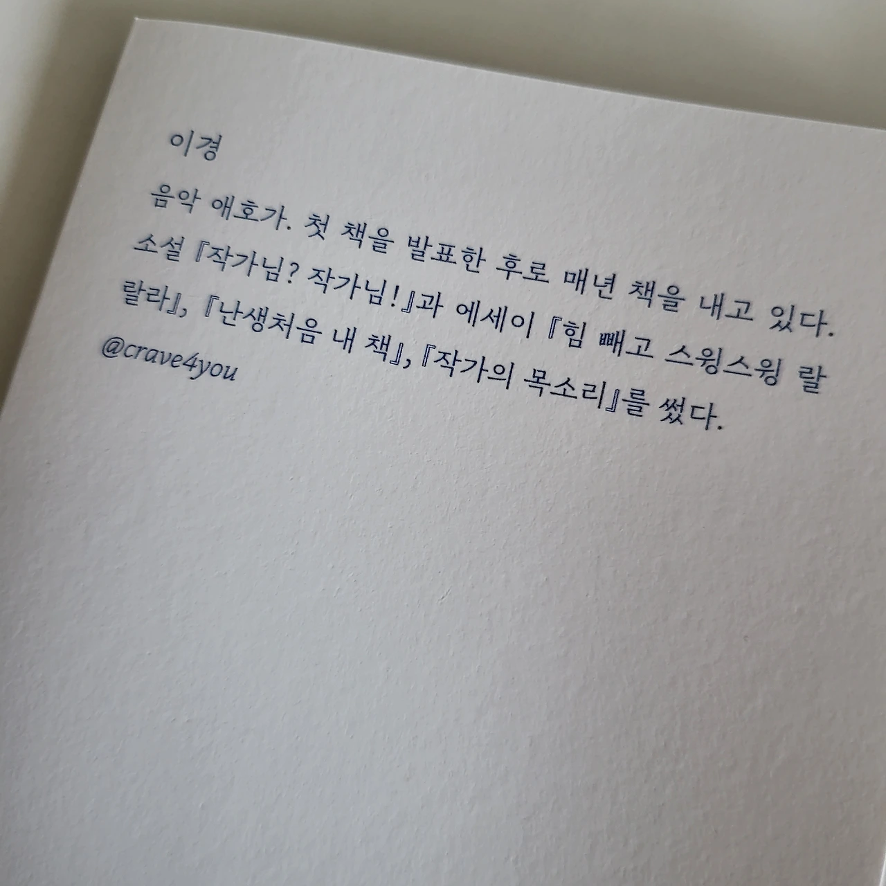 작가님은 한 번도 가보지 못했다는 부산을 설, 추석 일 년에 두 번은 꼭 방문하는데요, 그때마다 플레이리스트에 늘 똑같은 곡이 담겨 지겨움에 졸음운전이 몰려오곤 했는데, 올해는 아주 다채로운 곡으로 안전운전을 할 것 같은 든든한 느낌이 듭니다. 저는 작가님이 추천해 주신 여러 곡들 중에서 특히 원미연의 <이별 여행>이 기억에 남았습니다. 저 역시 어릴 적부터 좋아하던 노래 중 하나였거든요. 또 얼른 투팍의 <Nothing To Lose>를 들으며 어깨를 들썩이다가 김광석의 <너에게>를 들으며 복잡한 마음을 다스리는 날이 오기를 바라며 두 곡을 연달아 들었는데 설레면서도 뭉클했습니다.(참고로 이 두곡은 작가님이 OO이 OO때 듣는 노래라고 합니다. 궁금하면 책을 펼치세요) 물론 다른 곡들도 푹 빠져서 들었습니다. 저도 작가님께 한 곡 추천을 드리옵자면 저는 이정석 조갑경의 듀엣곡을 좋아합니다. 대학교 방송국에서 아침방송을 하던 시절 LP로 틀던 이 곡이 어찌나 좋은지요, 연인과 이 노래를 듀엣으로 멋지게 불러야지 하며 미래를 그렸었지요. 음,,, 남편과 실제로 불러보고 알았습니다. 노래는 부르는 것보다 듣는 게 좋더군요. 작가님의 여섯 번째 책을 기다립니다.