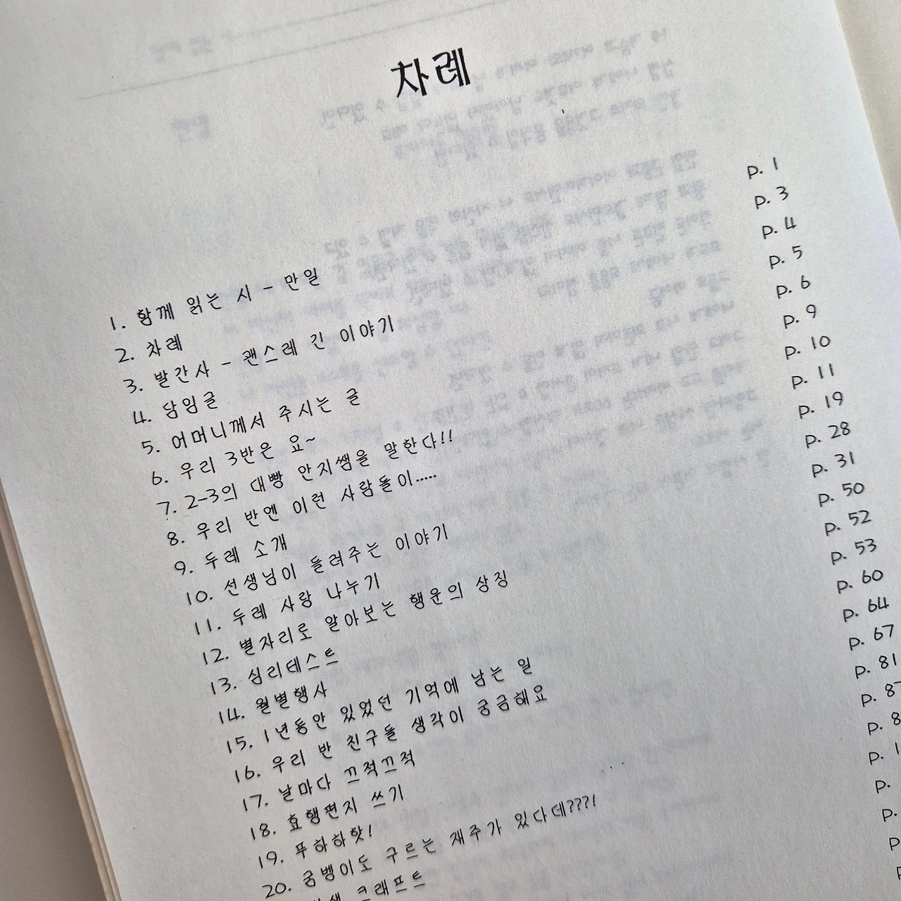 선생님께 이 편지가 전달될지 안 될지는 몰라도 죄송하다고, 감사하다고 인사하고 싶어요. 문집 만들기에 실을 글 쓰는 게 싫어서 내뺐던 제자가 이제는 글을 쓰는 일을 하고, 글 쓰는 모임을 한다고 하면 깜짝 놀라며 어이없어하시겠죠? 학급문집 만들 때 정말 불평불만 많이 했는데, 세월 지나고 들춰보는 학급문집은 저를 15살 철부지 소녀로 데려가 행복한 미소를 머금게 만듭니다. 이럴 줄 알았음 더 많이 쓸 걸 그랬나 봐요. 그래도 친구들과 선생님의 이야기를 많이 듣고 추억할 수 있어 좋습니다. 비록 현실에서 다시 만나지는 못해도 추억 속에서 만나 못다 한 수다를 떨기를 바라며 이만 편지를 마칩니다. 부디 건강하시기를.