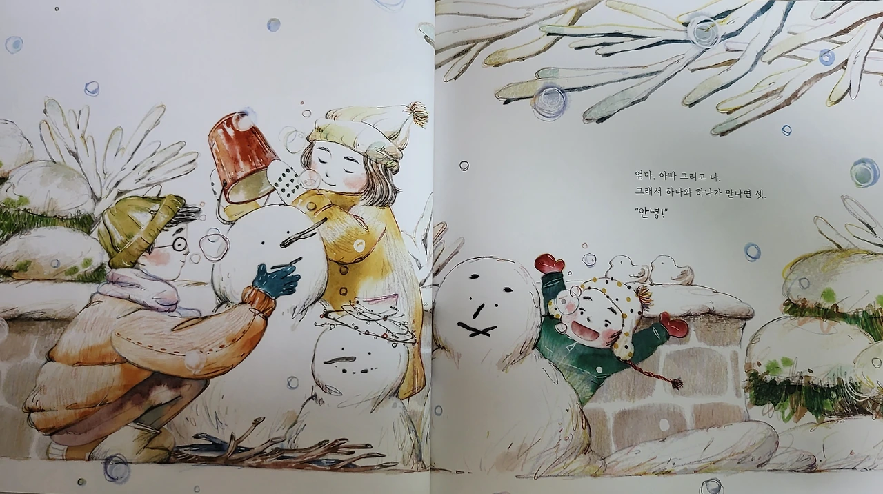 그림책 마지막 장면에 엄마품에 쏘옥 안기면 하나가 된다라는 장면이 나온다. 나도 오랜만에 우리 가족을 하나로 만들어 보아야겠다. 아이들을 꼭 안아주어야지. 남편까지 보듬어주기엔 조금 마인드 컨트롤이 필요할 테지만, 오늘 연애시절을 회상하는 글을 쓰며 떠올렸던, 하나였던 감성을 다시 상기시키며, 꼭 안아주련다. 하나가 하나와 만나 더 큰 하나가 되기 위해.