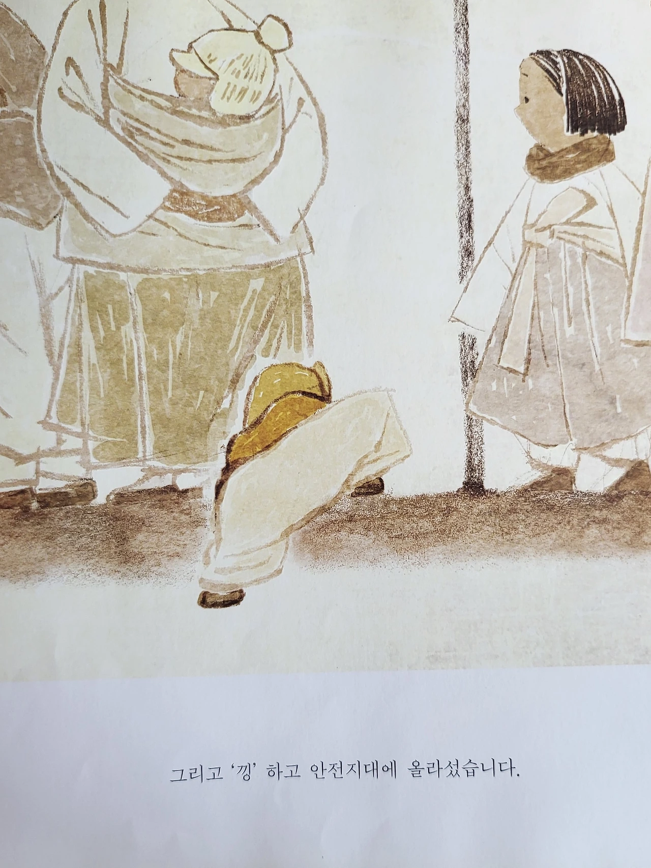 일하러 간 엄마를 기다리기 위해 자신의 키만큼 높은 턱을 영차 올라서서는 하루 종일 코가 빨개질 정도로 묵묵히 서있다. 그림책의 장면은 한 장씩 넘어가지만 어쩌면 몇 날 며칠을 기다렸는지도 모른다는 생각에 맘 한구석이 저릿했다.