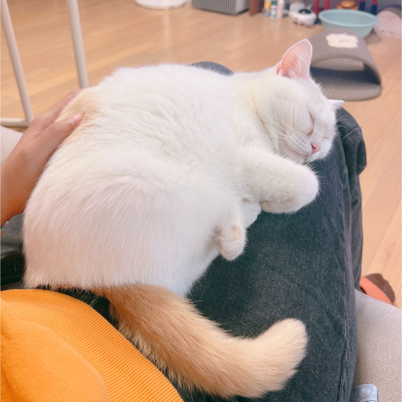 하지만 나는 처음 며칠간, 피하수액을 마친 후 혼자 발코니에 들어가서 엉엉 울었다. 어렵거나 힘들어서 등의 이유는 물론 아니었다. 가장 큰 감정은 미안함이었다. 더 잘 케어해 줬더라면 이런 순간이 더 늦게 오지 않았을까, 내가 조금 더 바늘을 잘 찔렀더라면 덜 아파하지 않지 않았을까, 하는 생각이 꼬리에 꼬리를 물었다. 이런저런 생각을 하며 엉엉 울고 방으로 돌아가면 몽땅이는 아무렇지 않게 다가왔다. 어디 다녀왔냐는 듯 다리에 머리를 부벼댔다. 마음을 추스르고 소파에 앉으면 무릎 위에 폴짝 올라와서 수액으로 퉁퉁하게 차오른 어깨를 들썩이며 잠에 들기도 했다.