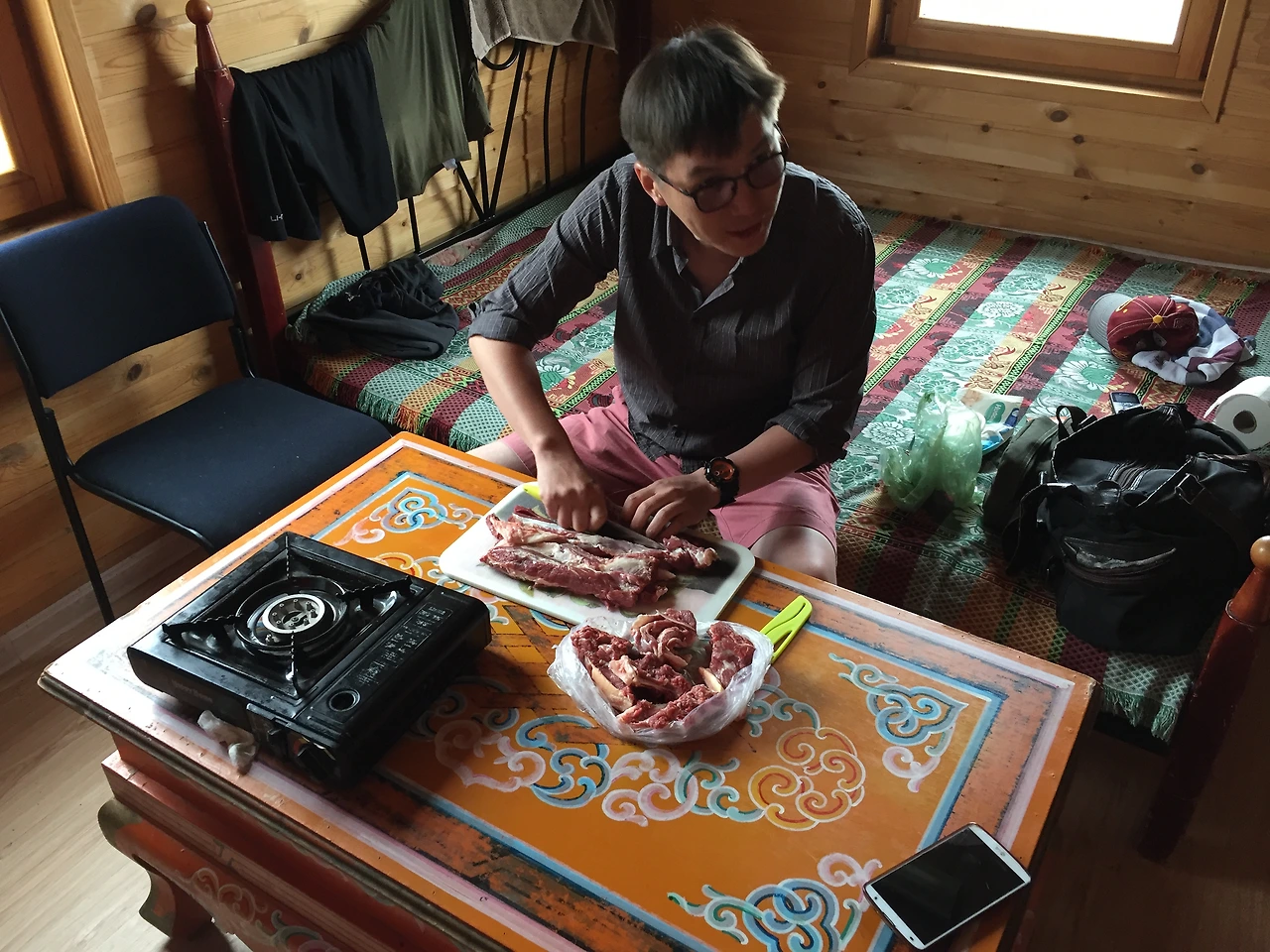 이렇게 아므라는 매순간 우리를 진심으로 대했다. 프로같았던 아마추어 가이드 아므라. 어쩌면 돈을 벌기 위해 하는 일이 아니었기에 더 진정성있게 우리를 가이드했는지도 모르겠다. 부자에서 많은 것을 내려놓기로 한 아므라도 새로운 직업을 찾아야했다. 아므라는 홉스골에 땅을 사서 캠프를 차리고 울란바토르와 그 캠프를 오가는 소소한? 제 2의 인생을 살아가기로 한 모양이었다. (사실 우리 홉스골 일정중에 아므라는 땅을 계약했다;;) 여행 중 아므라는 딱봐도 비싸보이는 옷들을 많이 입고 가지고 다녔는데 한번은 게르 안에서 방금 갈아 입은 자신의 폴로 셔츠를 바라보며 또 혼잣말로 "휴 이제 이런 비싼 옷 못 사 ㅠ" (몽골말, 아미통역)라고 중얼거렸는데 그 모습이 어찌나 처연하면서도 귀여웠는지. 캠프를 차리는 걸 보면 어디까지 내려놓으려는 건진 잘 모르겠지만 아므라가 이전보다 행복한 삶을 살길 바랄 뿐이다.