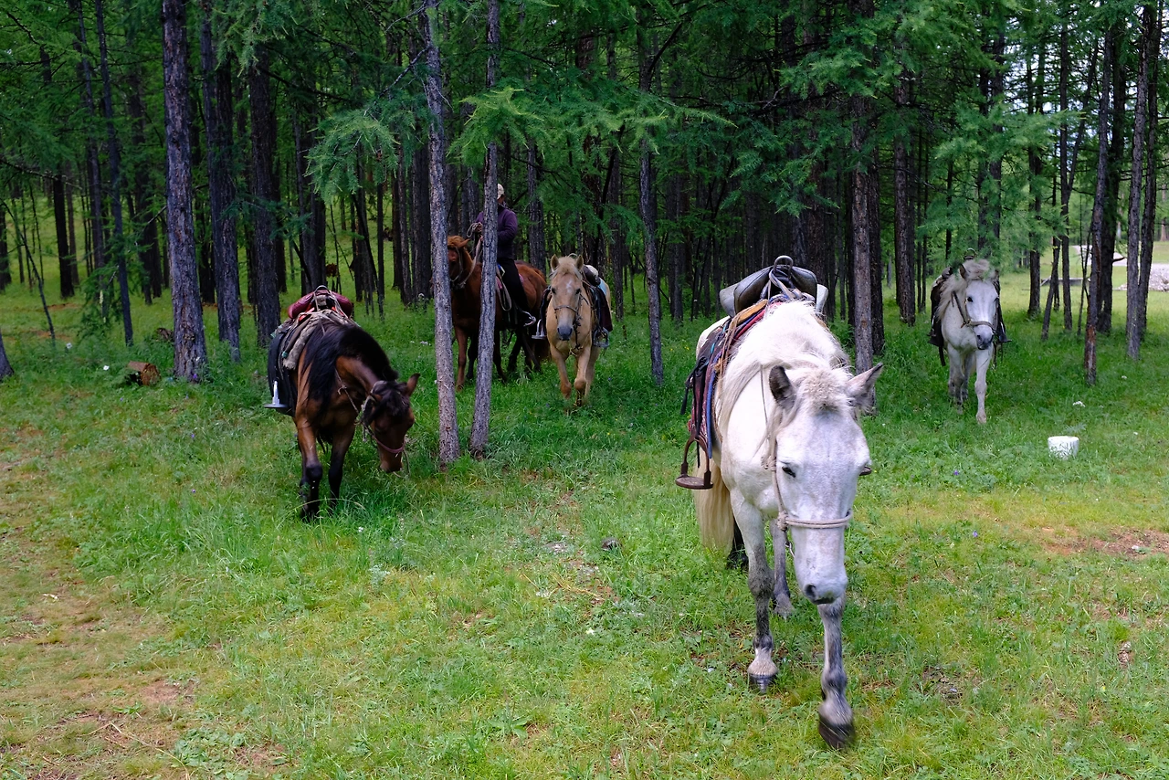 홉스골에 도착했을 때 기회가 왔다. 여행 초반부터 아미에게 끊임없이 '말사랑'을 어필한 덕에 아미가 홉스골 일정 첫 날 바로 마부 아저씨를 소개시켜줬다. 아미와 안면이 있었던듯 아저씨는 나를 바로 말에 태웠고 얼마 지나지 않아 곧 달리기 시작했다..(? 기본적인 것들을 전수받긴 했지만 좀 빠른감이 있었다)