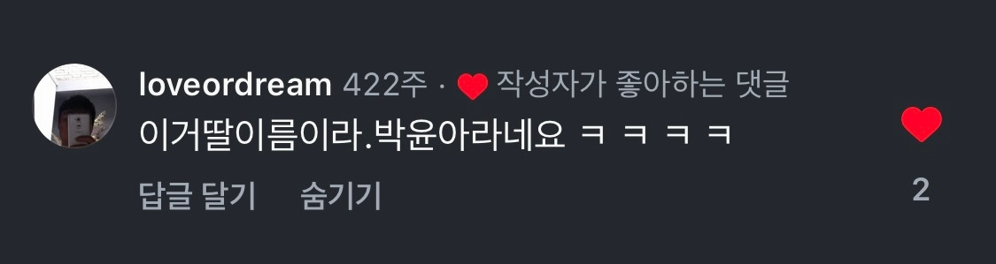 이거 딸이름이라. 박윤아라네요 ㅋㅋ