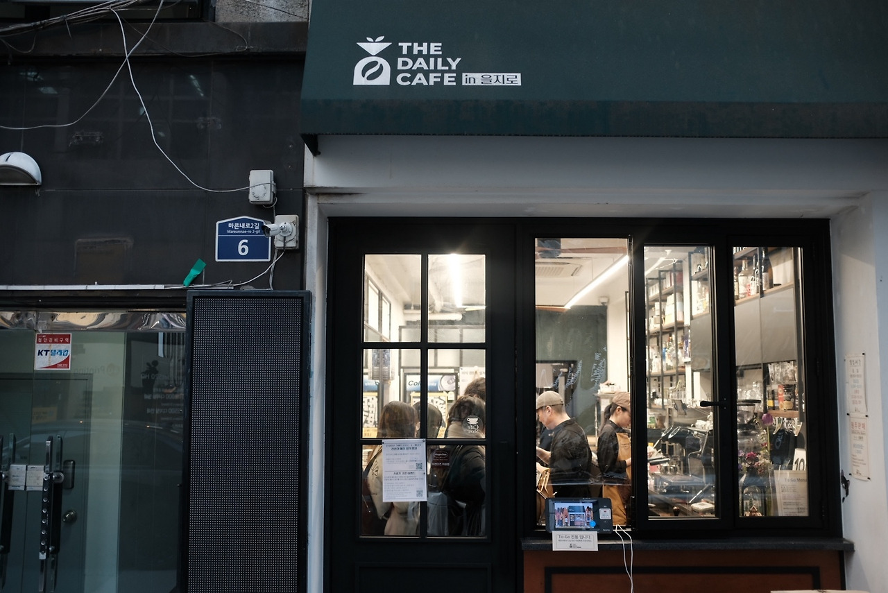 환대에 대해 적어보기로 했는데 어떻게 쓸 수 있을까. 추상적인 개념을 정리하려면 역시 레퍼런스가 최고! 꼭 십분의일과 비슷하진 않아도 방문했을 때 자신만의 방식으로 환대를 잘하고 있는 곳들을 정리해 보기로 했다. 아무래도 을지로 주변의 가게들이 될 것 같다. 그 첫 번째 장소는 을지로의 작은 에스프레소바 <더 데일리카페인 을지로>다.