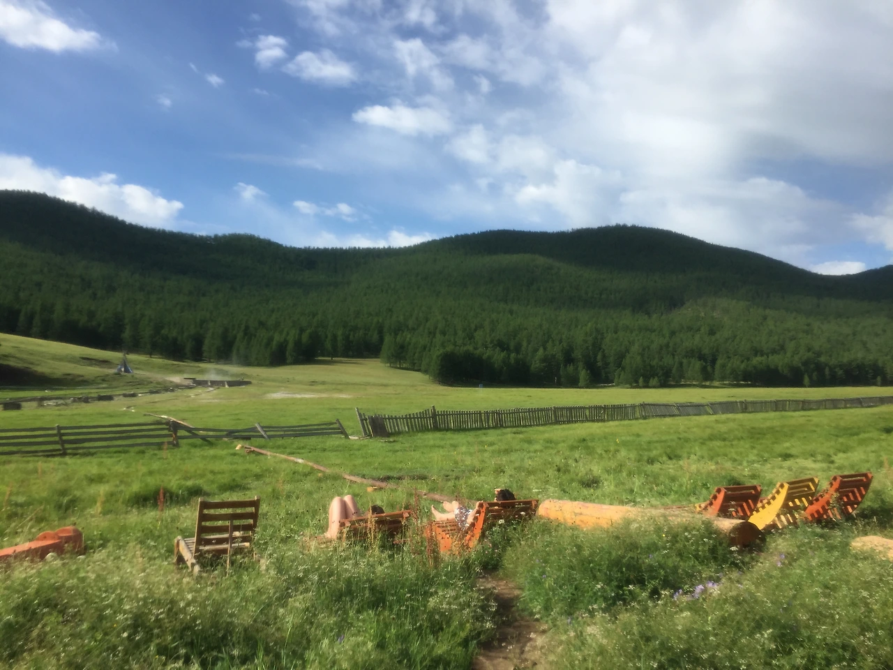 온천 지역 전체가 국가의 소유고 국가에서 운영하는 곳이다. 그래서인지 부대 시절 면에서는 좀 소박한 편? 특별히 치장을 하거나 손을 대기보단 있는 그대로 둠으로서 자연과의 어우러짐을 생각한 것 같기도 했다. 그덕인지 주변 경관이 정말 예쁘다. 몽골 특유의 파란 초원은 사실 다른 곳에서도 볼 수 있지만 쳉헤르에서 봤던 초원이 가장 아름다웠다. 온천 말고는 딱히 할 게 없지만 그냥 바라보는 것만으로도 충분한 그런 곳이었다.