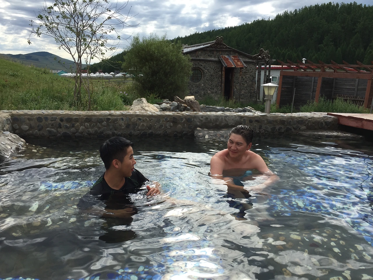 쳉헤르는 기본적으로 리조트 형태로 돼있다. 울타리가 쳐져있고 안에는 게르가 줄지어 늘어서있다. 게르 하나하나가 모두 숙박동인 셈. 그리고 그 끝에 온천이 있다. 온천의 규모는 작다. 전부 노천탕인데 온도가 다른 탕이 5개 정도 있는 정도. 남녀 혼탕이고 수영복을 입는다. 입구에 여느 수영장처럼 작은 샤워실이 있는데 시설이 깔끔하고 좋았다. 몽골에서 이렇게 물이 콸콸 잘 나오는 곳은 내가 가본 곳 중엔 쳉헤르가 유일했다. 무엇보다 매력적이었던 것은 온천 이용 횟수에 제한이 없다는 것이었다. 쳉헤르에서 숙박하는 사람은 원한다면 하루에도 몇 번씩 온천을 이용할 수 있다. (물론 이용 시간은 정해져 있다. 너무 늦은 심야 시간대는 이용 불가).