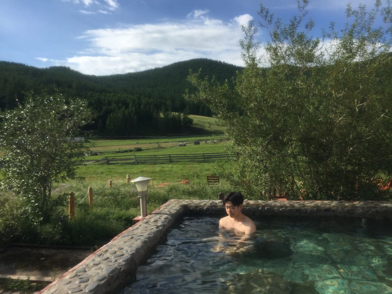 우선 몽골에 강도 호수도 아닌 온천이라는 게 참 신비롭다. 온천은 왠지 수려한 산을 끼고 있는 일본의 작은 마을이나 각종 수식어가 잔뜩 붙은 호텔 스파쯤은 찾아가야 만날 수 있을 것 같은데, 대초원 한복판에 온천이라니. 실제로 쳉헤르는 어디 산속 마을이 아닌 초원 한가운데 덩그러니 놓여있다. 게다가 초원 뷰가 보이는 노천탕이어서 정말 대자연 속에서 온천을 즐기는 느낌이 난다.