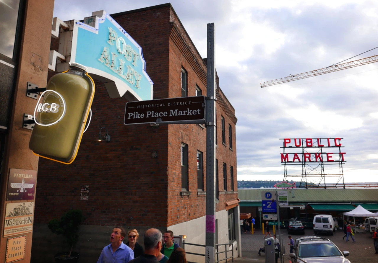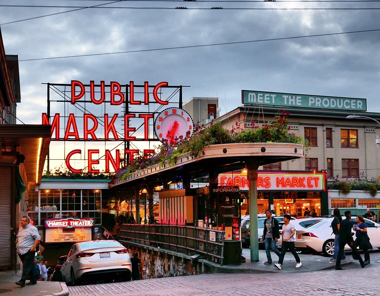 시애틀에서 관광객과 시애틀라이트가 가장 많이 어우러져 있는 곳을 꼽으라면 대부분의 사람들이 고민 없이 파이크 플레이스 마켓(Pike Place Market, 피크 플레이스 마켓)을 선택한다. 매년 천 만명이 넘는 사람들이 방문하는 이 명소는, 관광객들에게는 시애틀에서 가장 유명한 관광지이며, 시애틀 사람들에게는 100년이 넘는 시간 동안 그들의 일상 속 한부분에 자리하고 있는 소중한 시장이자 삶의 터전이기 때문이다.