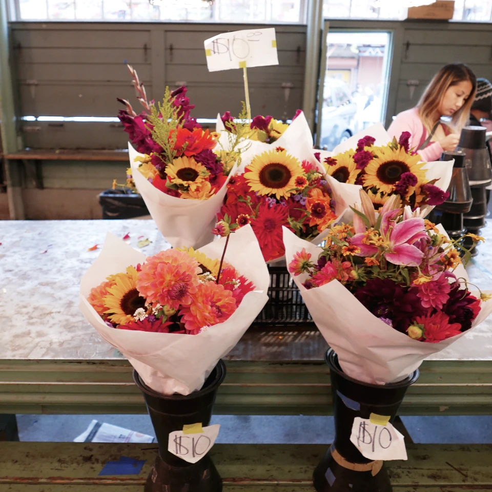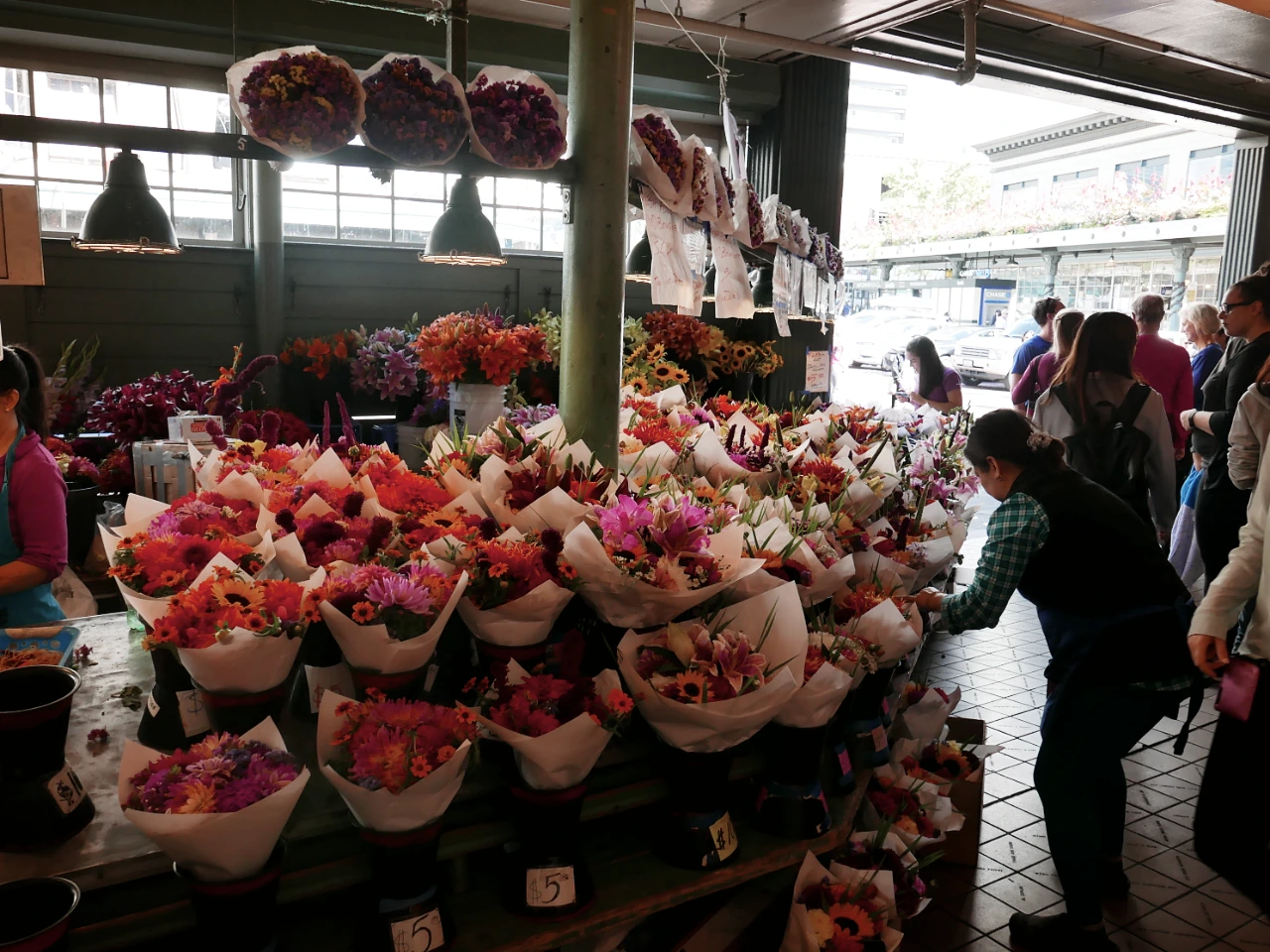 파이크 플레이스 마켓은, 내 상상 속 모습 그대로 활기찬 모습으로 나를 맞이했다. 시장의 한 쪽 면을 가득 채운 싱싱한 수산물들, 반대편을 가득 채운 수많은 꽃다발과 농산물. 파이크 플레이스 마켓을 향해 걸어오며 만났던 시애틀라이트들이 일요일 이른 아침부터 어디를 다녀왔는지 바로 알 수 있었다.