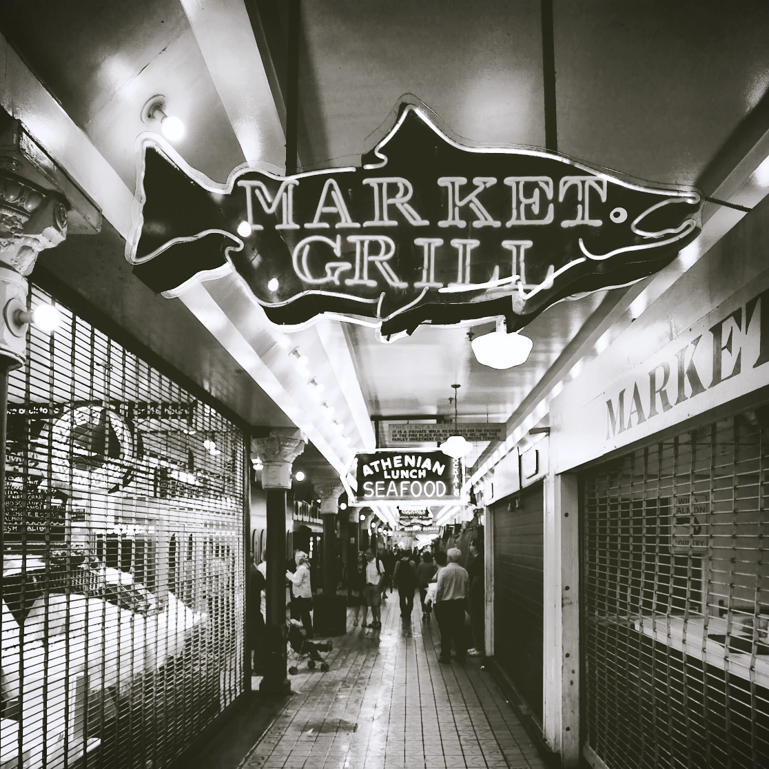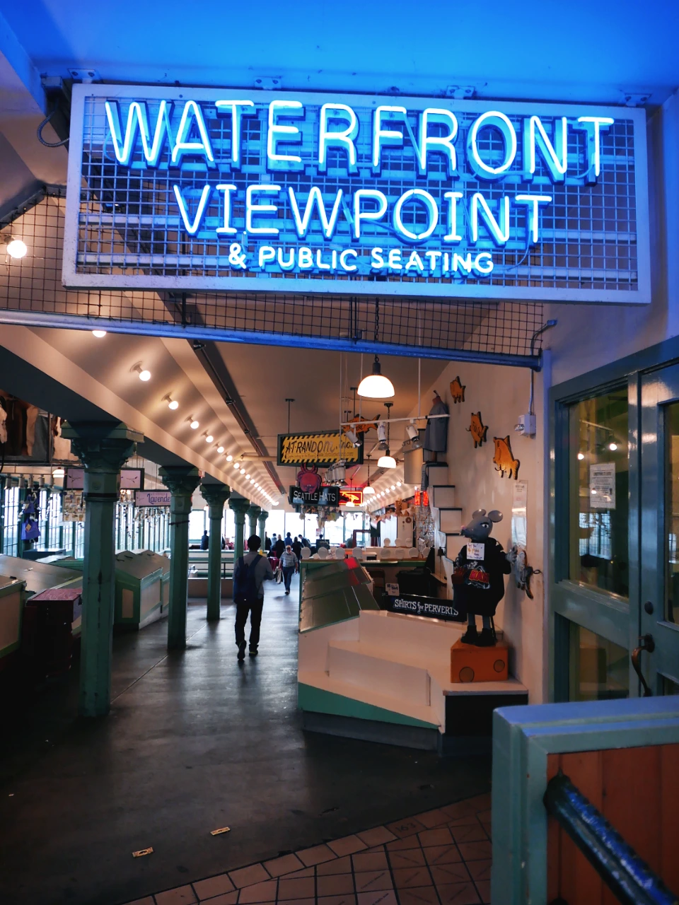 파이크 플레이스 마켓에 처음 도착했을 때는, 몇몇 식당을 제외하고는, 대부분의 상점이 이미 영업을 마쳤거나 마무리하는 중이었다. 싱싱한 농작물과 해산물, 밝은 미소와 생기 넘치는 시장 상인, 장바구니를 한 보따리 안고 가는 손님을 기대했던 나에게 남은 건 텅 빈 시장과 조금 이른 저녁이나 조금 늦은 점심을 먹기 위해 해산물 레스토랑에서 대기 중인 몇몇 관광객 뿐이었다.