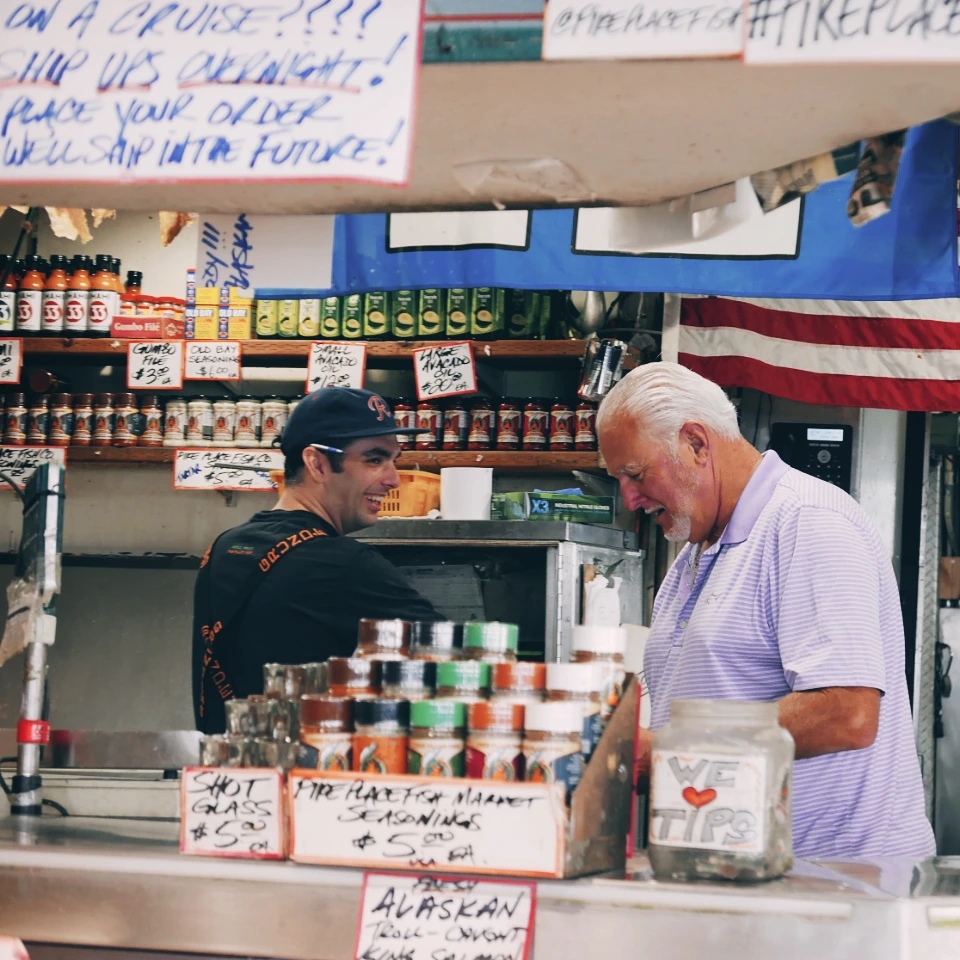 이 매장이 유명세를 탄 건, 잘생긴 어부들이, 목이 좋은 곳에서 싱싱한 해산물을 눈으로 직접 보고 구매할 수 있다는 것 뿐만 아니라, 매대 밖에 있는 상인이 손님이 선택한 King Salmon을 매대 안에 있는 상인에게 던져주는 퍼포먼스를 펼치기 때문이었다. 별거 아닐 수 있지만, 비슷비슷한 해산물 가게가 즐비한 이 곳에서 그들의 자그마한 퍼포먼스는 엄청나게 큰 차별화를 이끌어 내며 시장 내 최고의 Fish market place로 자리 잡았다.