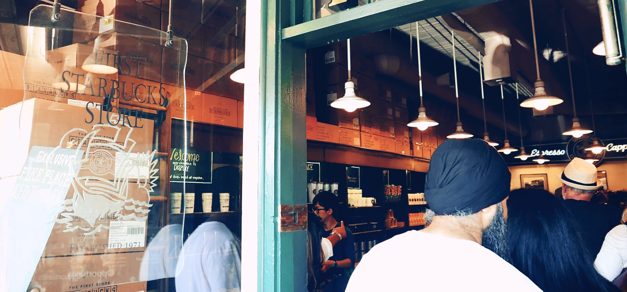 그리고 또 한 가지는, 감히 단언컨데, 스타벅스의 힘이다. 스타벅스가 시애틀의 파이크 플레이스 마켓에서 원두 로스팅을 넘어 라떼를 팔기 시작하며 미국 스타일의 카페문화(커피 전문점 문화)가 자리 잡기 시작했다고 할 수 있다. 그리고 그 문화를 처음 접한 게 바로 시애틀 사람들이었으니 그들의 커피 사랑은 어쩌면 당연한 것일지도 모른다. 그래서 난 시애틀에 도착하자 마자 그 역사가 시작된 그 곳으로 향했다.