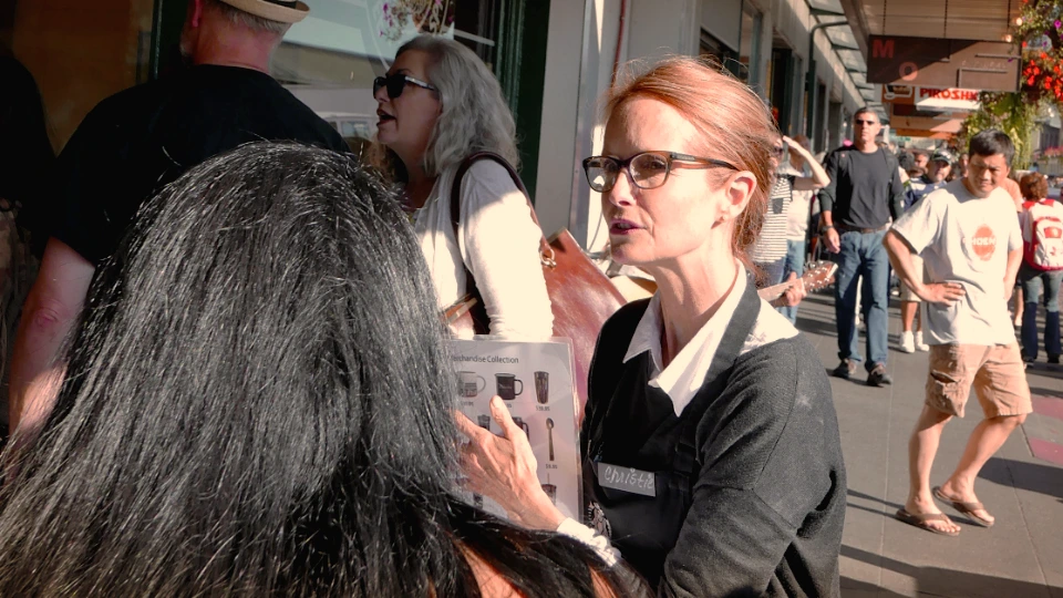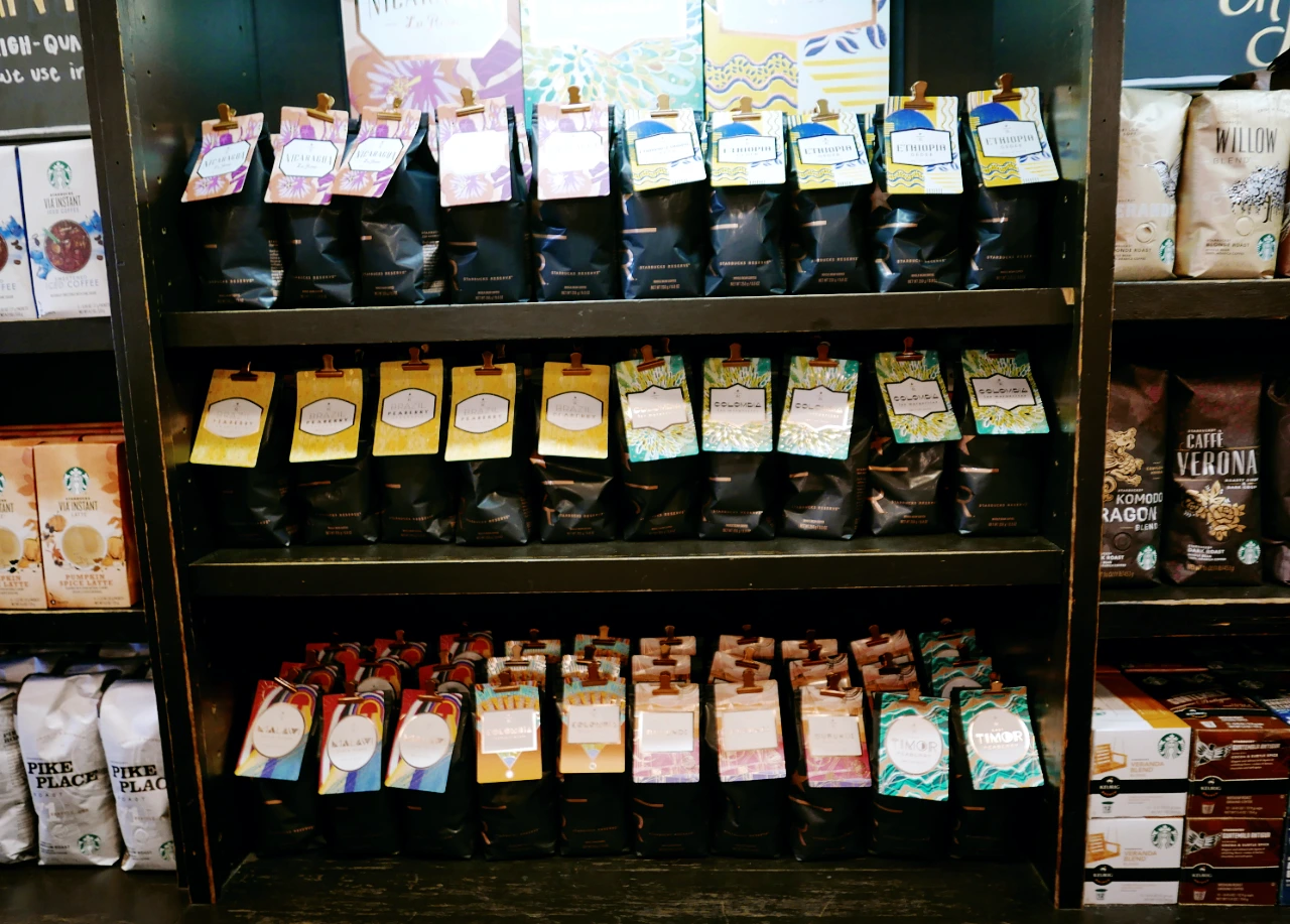 한 두 사람만 더 계산이 끝나면 내가 들어갈 차례가 올 것 같았다. 그 순간 Christie가 다가와 매장 내에서 판매 중인 굿즈들에 대해 설명을 해줬다. 스타벅스 1호점에서는 총 16개의 굿즈를 판매하고 있었다. 그녀는 이 모든 걸 카운터에서 주문할 수 있으니 매장을 돌아다니며 집어 올 필요가 없다고 안내해 줬다. 그리고 자연스레 대화가 시작됐다.