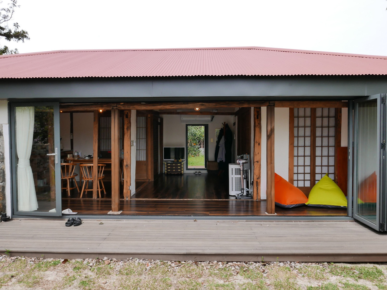 폴딩도어를 활짝 연 채로 누워 책을 읽고, 게임을 하고, 달콤한 낮잠을 자거나 수다를 떨었던 거실.