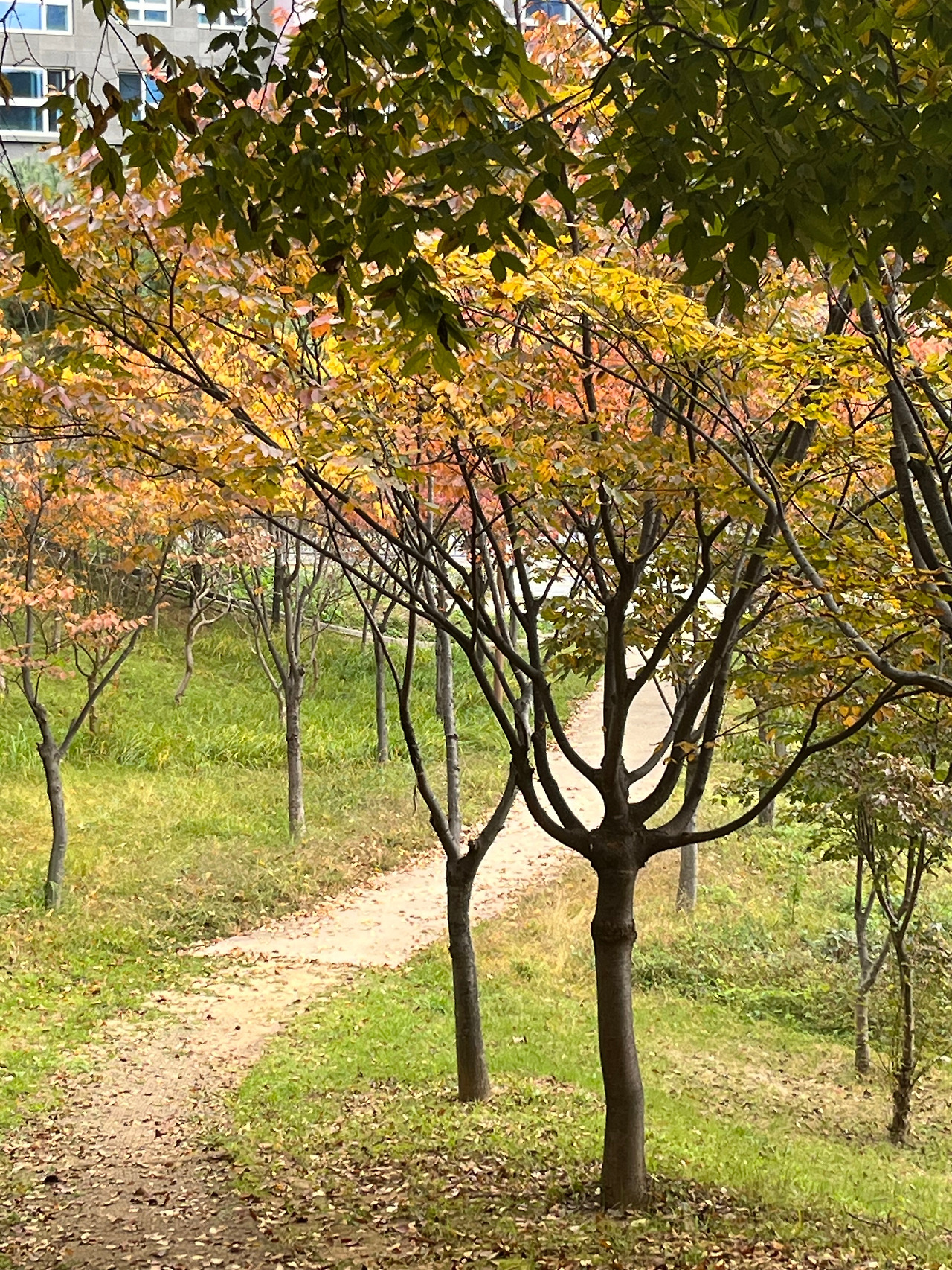 세상이 제법 쌀쌀한 기운으로 채워지기 시작할 때쯤, 홀로 숲에 오를 용기가 조금 생겼다. 하지만 아직도 마음 한편에는 두려움이 완전히 가시지 않았기에 호신용 무기를 챙겨가야 하나 잠시 생각했지만, 유난인가 싶기도 하여 차라리 주위를 더 자주 살피며 걷고, 유사시 그동안 갈고닦아 왔던 달리기 실력으로 전력질주하자는 쪽으로 결론을 내렸다. (숲에 가지 않는 동안 헬스장에서 매일 러닝머신을 뛰었더랬다.) 그렇게 큰 마음먹고 오른 숲의 모습은 여러 면에서 그 전과 사뭇 달라져 있었다. 초록으로 가득했던 나무가 조금씩 옷을 갈아입는 자연스러운 변화도 새로웠지만, 나뭇 가지고 나뭇잎이고 어수선하게 깔려있던 숲길이 인위적인 손길이라도 닿은 듯 깨끗하게 닦여 있던 것이 나의 호기심을 자극했다. '누가 숲을 이렇게 만들어 놓았지?' 속으로 생각하며 계속 오르다 보니 어렵지 않게 숲길 변천사를 이룩해 낸 사람들의 정체를 알아낼 수 있었다.