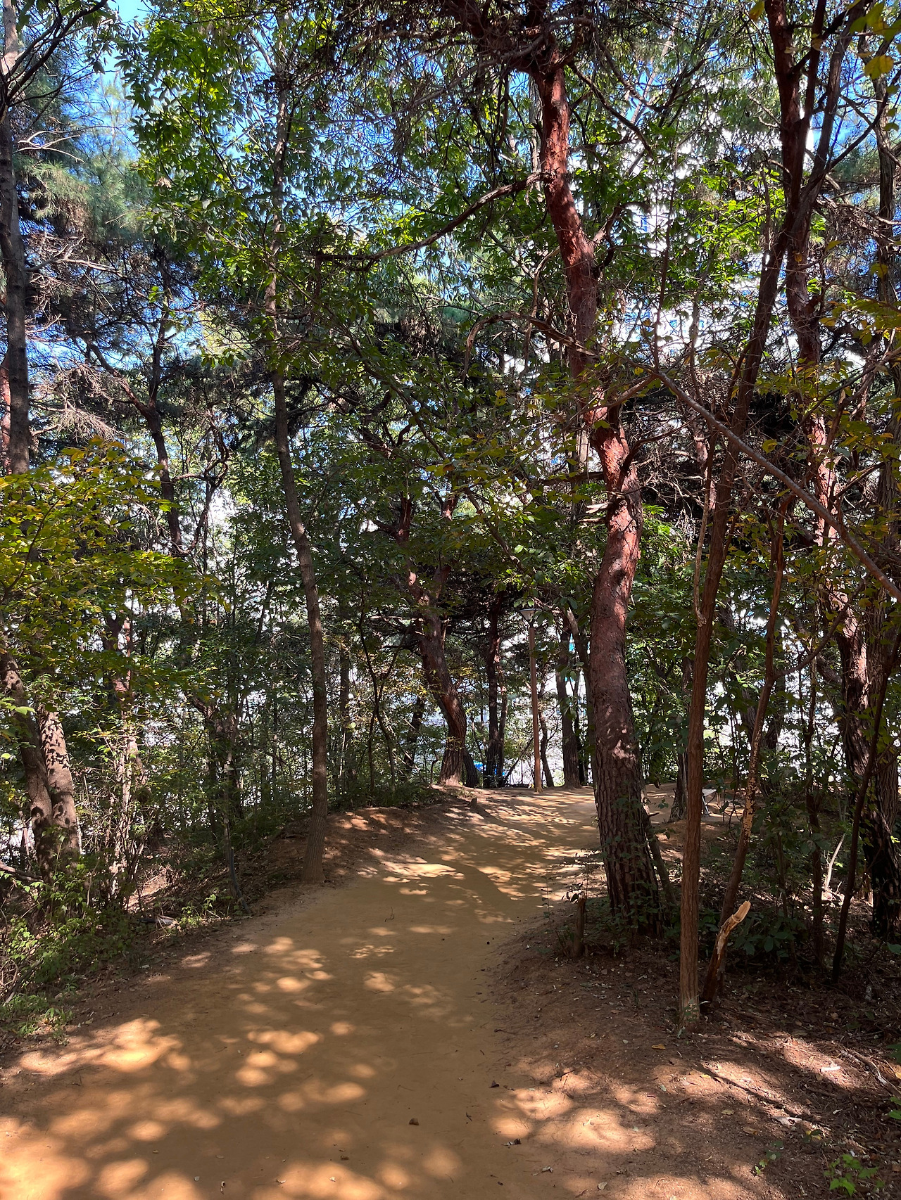 그 정체는 바로, 매일 오후 1시와 3시가 되면 무리를 이루어 초록색 빗자루로 길을 쓸고, 신발을 벤치 옆에 가지런히 벗어 두고서는 맨발로 몇 번이고 길을 반복해서 걷던, 어싱(Earthing) 동호회 회원들의 소행이었다. 나는 무해해 보이는 동행이 생겼다는 사실에 그만 마음이 푹 놓였다. 그리고 아무 말 없이 이들의 뒤를 좇아 숲길 초입에서부터 끝까지 왔다 갔다 하며 오랜만에 숲의 싱그러움을 한 껏 흡수했다.