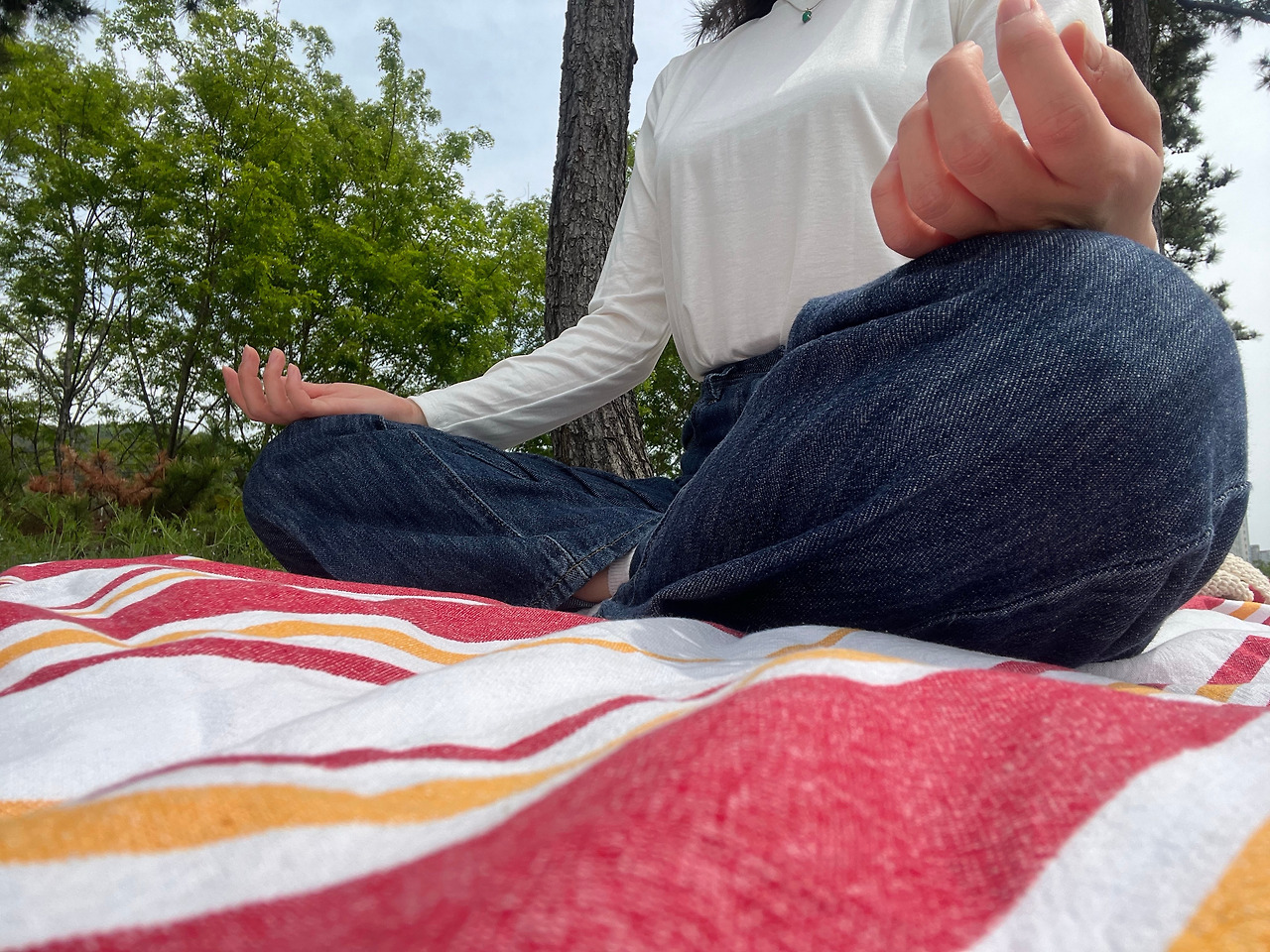 처음으로 야외 명상을 했다. 바다가 보이고 풀과 나무로 뒤덮인 노지였다. 나는 얇은 천 위에 가부좌를 틀고 앉아 가이드 명상을 틀었다. 귀에는 노이즈 캔슬링 기능이 있는 헤드폰을 착용했다. 나는 비교적 빠른 시간 내에 집중할 수 있었고, 영상에서 말하는 “Everything I need is whithin me(내게 필요한 것은 모두 내 안에 있다)”라는 메시지를 온몸으로 받아들였다. 잡생각은 거의 들지 않았다.