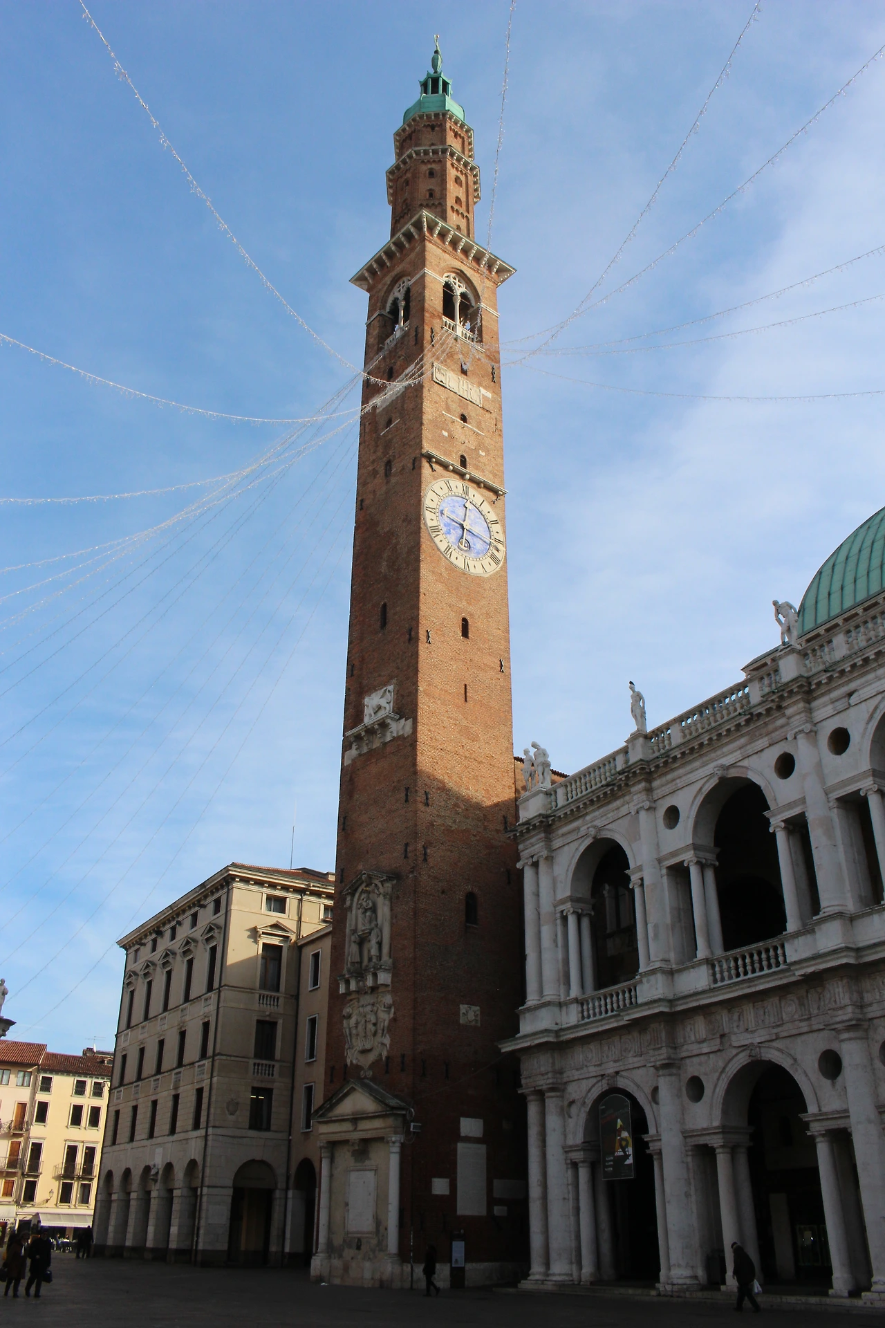 우리는 비첸차의 한 광장에 다시 모였다. 팔라디오 초기 건축물과 약 20년후 만든 건물이 나란히 있는 곳이었고, 예전에 이곳이 베네치아의 지배를 받았다는 것을 알 수 있는 흔적인 사자상이 기둥 높이 서 있었다. 하얀 건물은 토론장 같은 용도로 사용된 건물이고 맞은편 벽돌이 드러난 건물은 이곳을 다스리던 베네치아 비첸차 총독이 사용한 건물이라고 한다.