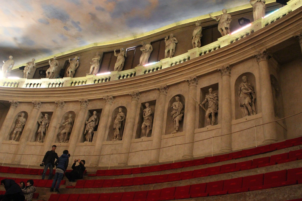 현존하는 실내극장 중 가장 오래된 것이라 한다. 이 극장은 팔라디오가 만들다가 죽는 바람에 다른 사람이 만들었는데, 후원하는 사람들의 얼굴들을 장식으로 넣기도 하였다 한다. 지금도 극장에서 공연이 열리는데, 난방 시설이 없어서 겨울에는 운영을 안한다고 한다.