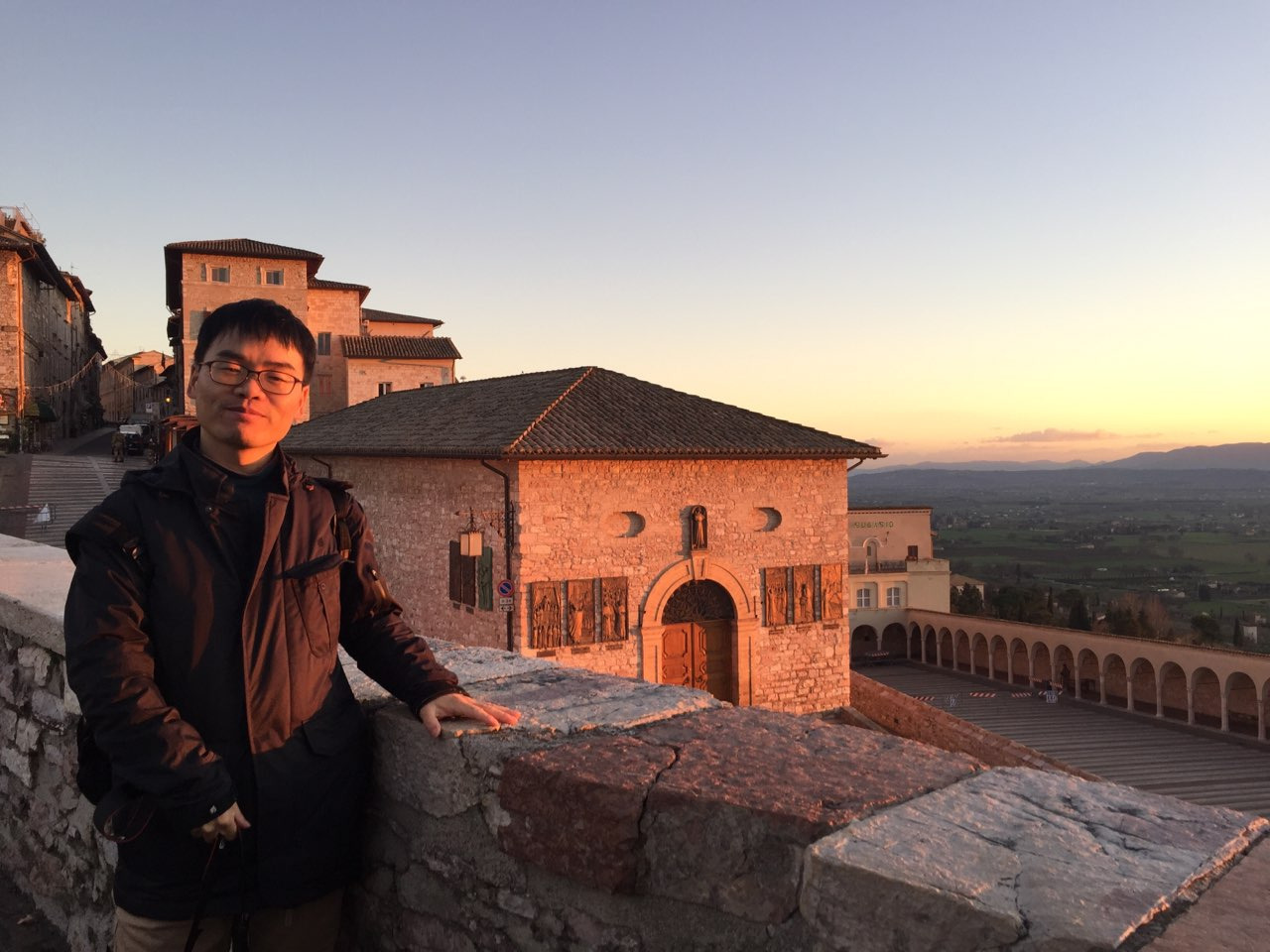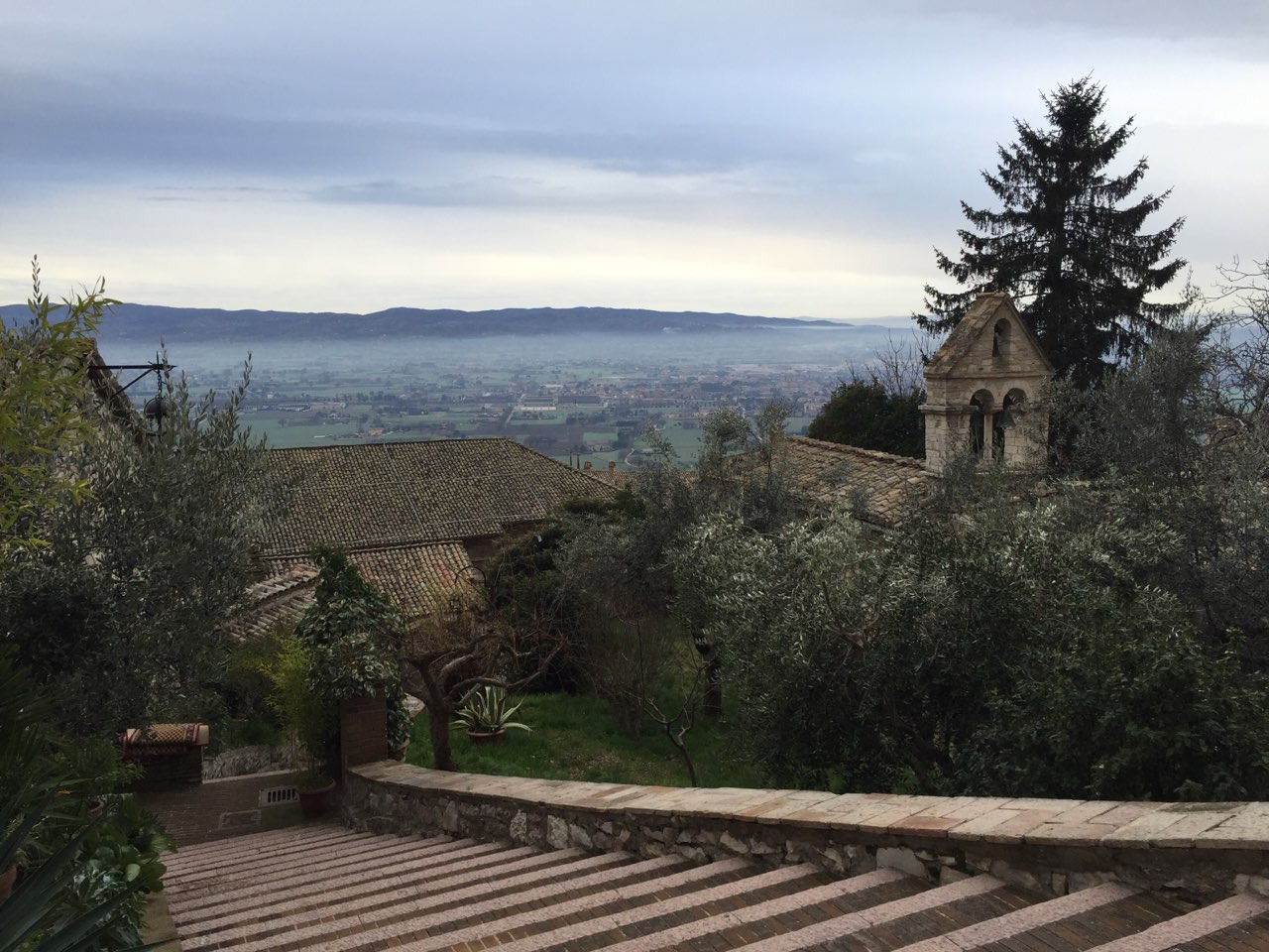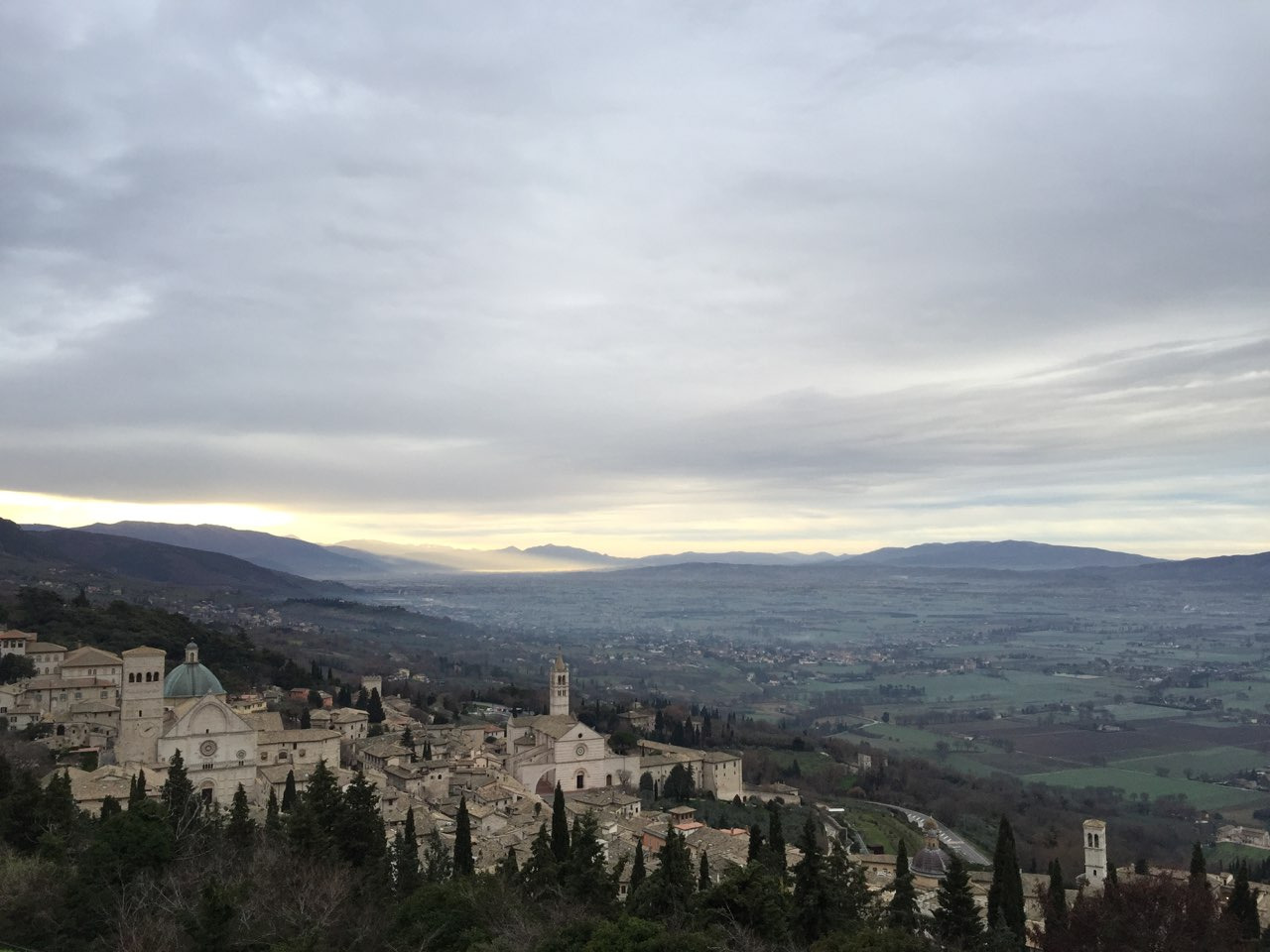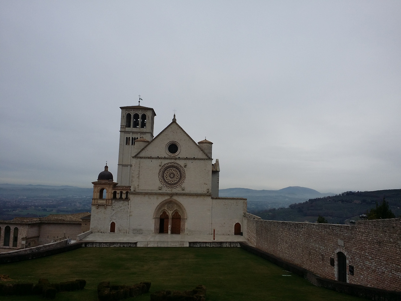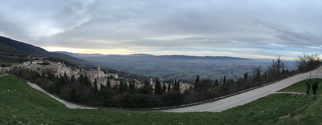 잠을 자고 일어나니 밖은 이미 가로등이 하나씩 켜지고 있었습니다. 가이드가 산비탈에 있는 타원형의 마을이 아시시라고 알려주었다. 아시시 아래 지금 내가 있는 곳에 마을이 없었다면 더 멋진 곳이었을 것이라고 부연 설명도 하였다.