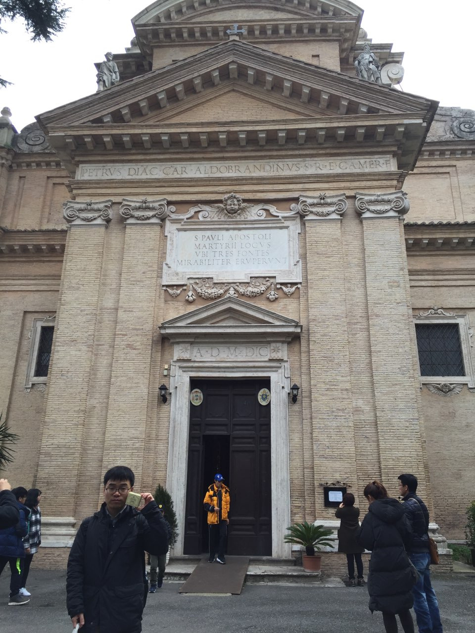 첫번째 목적지는 로마 시내를 가로질러 외곽에 위치한 성당입니다. 이곳에 카*돌리 화장품을 산다고 부탁했기 때문입니다. 우리들은 도착하자 마자 필요한 만큼 다들 한봉지씩 들고 나왔습니다. 그리고 약간의 여유가 있어 성당을 둘러 보았습니다. 도심의 시끄러운 차소리가 나지 않아 너무 좋았습니다. 이곳은 바울이 순교한 자리에 세워진 성당이라고 합니다.