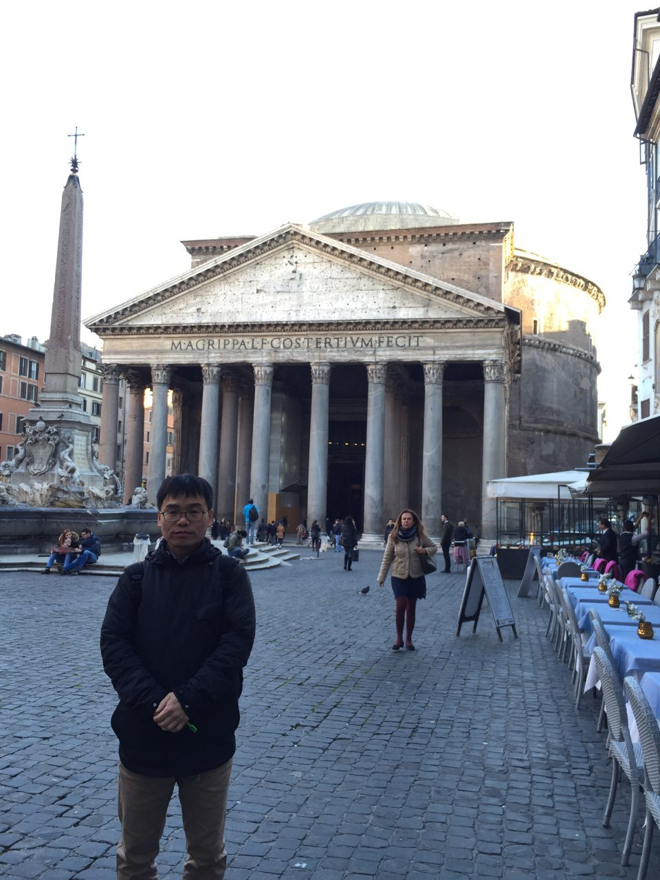 여행이 막바지에 이르렀습니다. 판테온 신전으로 갔습니다. 판테온은 기원전 27~25년에 아우구스투스의 사위이자 2인자였던 아그리파가 만든 판테온(그리스어로 Pan-모든 Theon-신)은 모든 신들을 위해 지어진 신전이란 의미로, 철학적으로 다원주의에 기초한 건축물입니다.