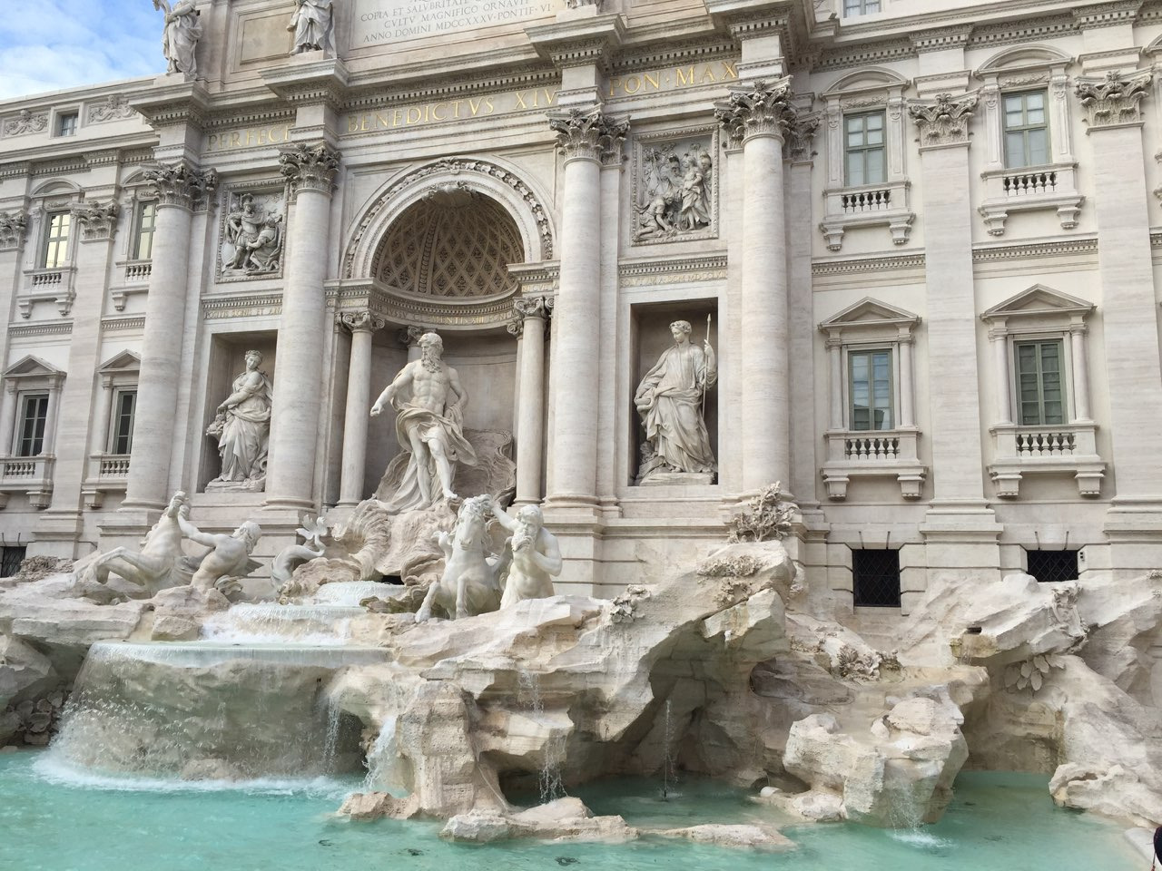 기원전 19년 아우구스투스 황제의 집정관인 아그리파가 수도인 아쿠아 비루지네(처녀의 셈)에 건설한 비르고 수로 위에 세워진 분수입니다. 그 무렵 로마에는 총 14개의 거대한 수로망이 있어 인구가 150만 명에 달했던 로마 전역에 물을 공급할 수 있었습니다. 하지만 5세기에 서로마 제국이 멸망하고 잇따른 이민족의 침략에 의해 비르고 수로를 비롯한 대부분이 파괴되었습니다. 이후 1453년 교황 니콜라우스 5세는 로마의 재정비와 물 부족을 해소하기 위해 도시에서 가장 오래된 비르고 수로 위에 분수를 만들어 이를 해결합니다. 1732년부터 1762년에는 교황 클레멘스 13세가 니콜라 살비(Nicola Salvi)에게 명해 평범했던 트레비 분수를 지금의 화려한 모습으로 완성하였습다. 아주많은 사람들이 분수를 즐기고 있었고 어깨너머로 동전을 던지고 있었습니다. 겨울이었지만 맑은 물이 끊임없이 흘러나오고 있었고 담긴 물색은 어떻게 저런 색이 나올 수 있을까 하는 생각까지 들었습니다.