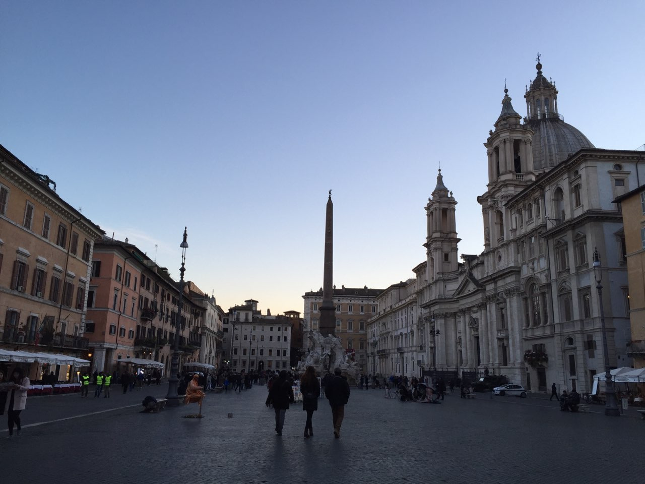 판테온 다음으로 나보나 광장을 갔습니다.1세기경 도미티아누스 황제가 만든 도미티아누스 경기이 있던 자리에 조성된 광장으로, 광장 주변의 건물들은 당시 33,000여명을 수용할 수 있었던 경기장의 관중석 자리였습니다. 광장은 과거 경기장과 같이 직사각의 형태를 유지하고 있는 것이 특징으로 17세기 교황 인노첸트 10세의 애착에 의해 적극적으로 조성된 이후 주변 건물들을 비롯 그 때의 모습을 지금까지도 이어오고 있습니다. 특히 교황 인노첸트 10세가 그의 가족을 위해 만든 팜필리 궁전과, 보로미니가 설계한 산타네제 인 아고네 성당 등은 나보나 광장을 이탈리아 최고의 바로크 양식의 광장이라는 명성을 얻게 했습니다.