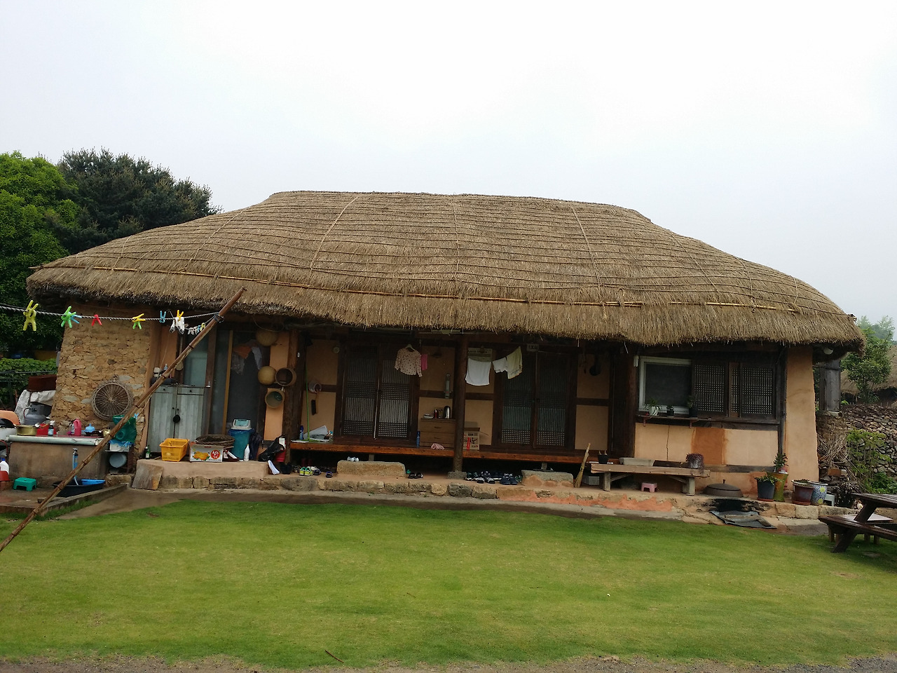 다음날 아침 공기는 상쾌했고 시골을 싫어하는 아내도 이 공기의 느낌이 좋아 시골로 이사갈까 하고는 웃어 넘긴다. 방문을 여니 비가 내린다. 낙안 모든 초가집 아래로 빗방울이 떨어지고 있다. 기왓집에서는 처마끝으로 쉴세없이 빠르게 떨어지던 빗방울이 초갓집 지붕을 만나니 천천히 쉼호흡 하면서 내렸다. 느림이 주는 마음의 평화를 이곳에서 즐긴다.