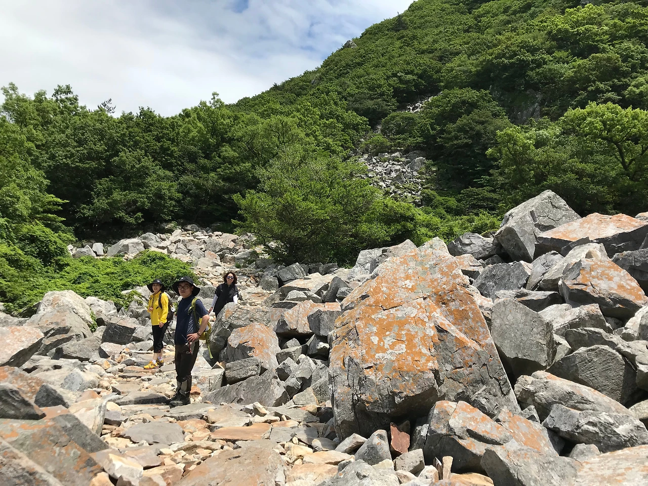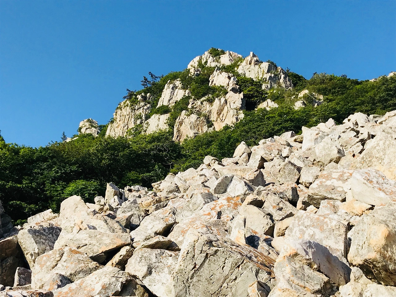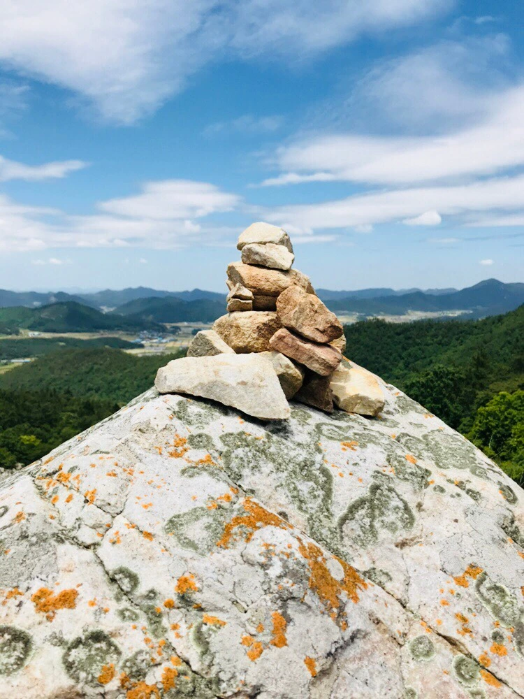 특이한 것은 산 정상에서 트럭으로 쏟아부어 놓은 것처럼 바위같은 돌들이 산 중간 중간에 흘러내리고 있었다. 마치 바위들의 무덤인 마냥 바위들의 계곡인 마냥 있는 것이 인상적이었다. 산의 한두군데 쯤 그런 모습을 본 적은 있지만 수시로 이런 풍경을 보는 것은 처음이었다. 그 바위들 사이로 자연을 훼손하지 않는 방법으로 돌들을 포개고 잘개 쪼개어 오솔길처럼 누군가가 만들어 놓았다. 그리고 많은 돌탑들이 수시로 여기저기에 만들어지고 있었다. 몇년이 더 흐른뒤에 온다면 돌탑들의 천국이 되어있을 수도 있겠다 생각했다.