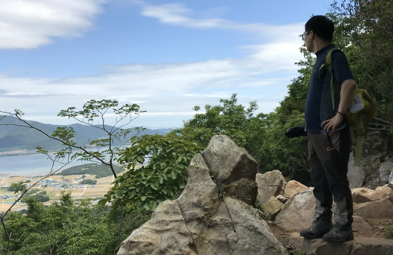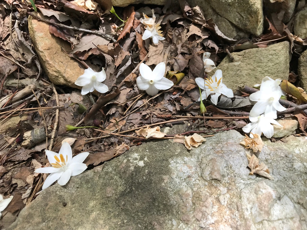친절하게 안내되어 있는 둘레길을 걷기 시작했다. 깨끗하니 쓰레기 하나 없는 길에는 걷기에 좋을 만큼의 흙길로 시작되었고, 굳이 햇빛을 가리기 위해 모자를 꾹 눌러쓰지 않아도 되었다. 달마산 숨향기를 느껴보려면 오히려 모자는 방해가 되는 존재였다. 생명을 다한 하얀 꽃은 달마고도를 꽃길로 만들어 주었고 이름을 알 수 없는 나무들은 연두빛과 맑은 녹색을 뽐내고 있었고, 산 중간 중간을 장식하고 있는 조릿대들을 보며 남쪽으로 한참을 내려와 있는 것을 알 수 있었다.