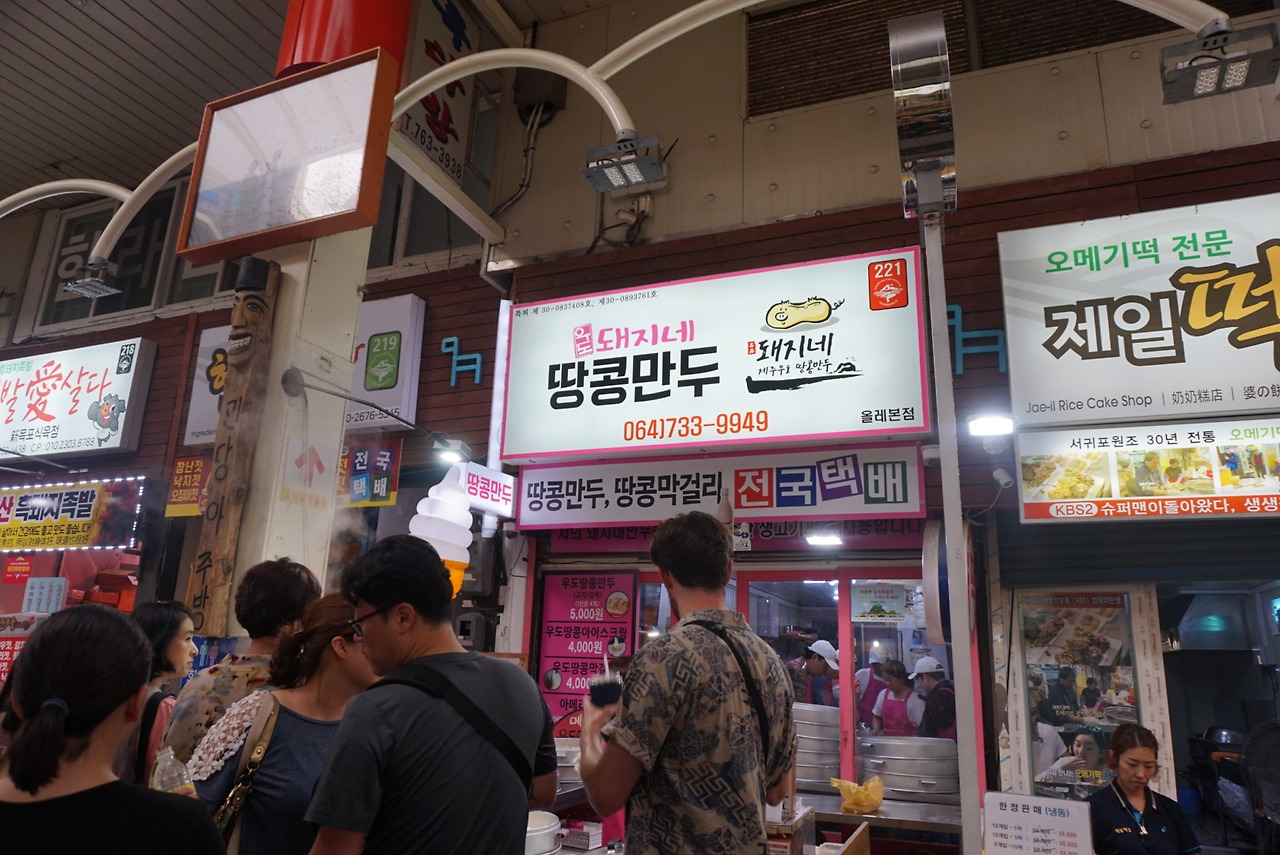 서귀포 올레시장에서 땅콩만두와 제주음료를 사먹었다. 아내는 만두가 맛있다며, 다른 날에 이곳을 지나다가 또 들러서 사먹었다. 음료수 통도 여긴 하루방 모양이였다. 시장 가운데는 물길을 만들고 그 주위를 앉을 수 있게 만들어 놓아 시장에서 간식사서 먹기 좋았다. 이곳에서 나는 바닷가에서 다리를 보호하기 위해 유혜진이 삼시세끼에서 산 것과 비슷한 보들보들 바지를 아주 싼 가격에 하나 샀다.